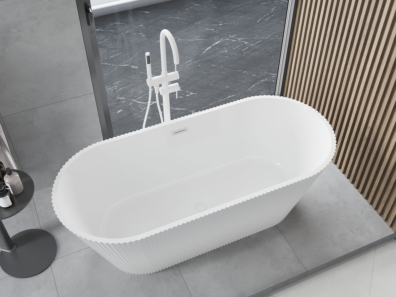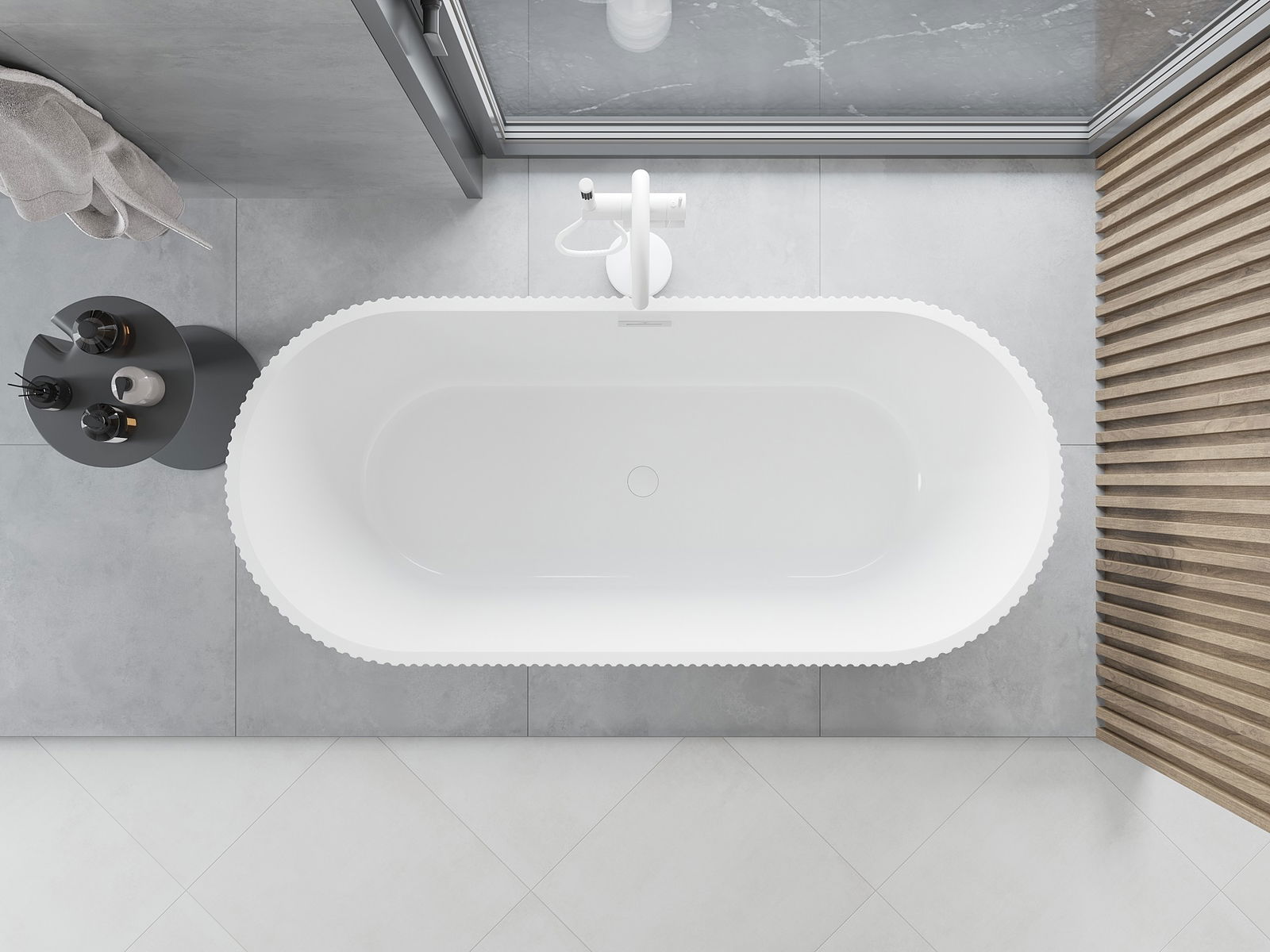 Je to moderný materiál, ktorý kombinuje elegantný vzhľad s vysokou trvanlivosťou. Je odolný proti mechanickému poškodeniu, ľahko sa čistí a je príjemný na dotyk. Transparentná forma a tenký okraj vane jej dodávajú ľahkosť a unikátny charakter, čím vytvárajú efektný prvok v usporiadaní kúpeľne.