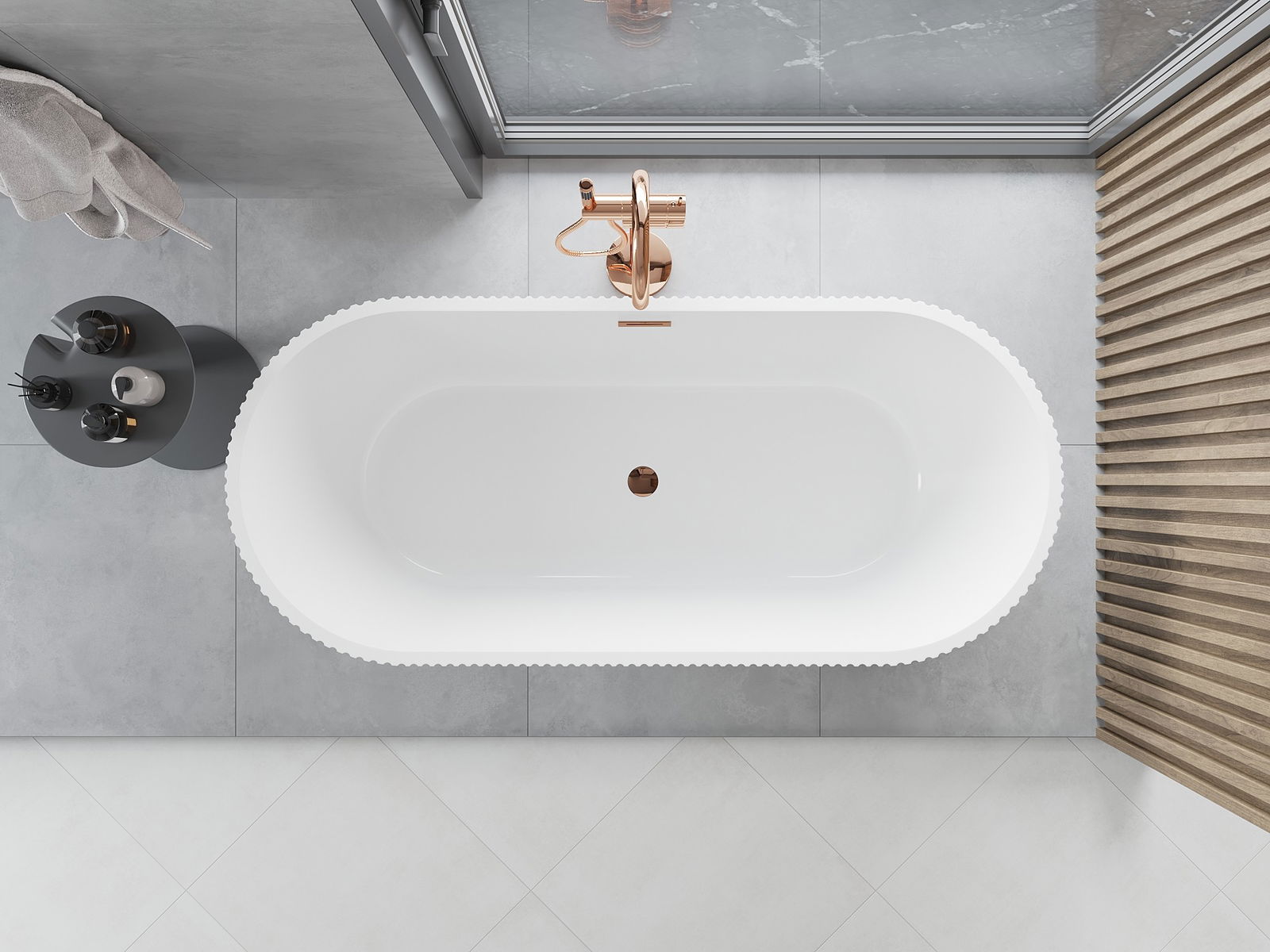 Je to moderný materiál, ktorý kombinuje elegantný vzhľad s vysokou trvanlivosťou. Je odolný proti mechanickému poškodeniu, ľahko sa čistí a je príjemný na dotyk. Transparentná forma a tenký okraj vane jej dodávajú ľahkosť a unikátny charakter, čím vytvárajú efektný prvok v usporiadaní kúpeľne.