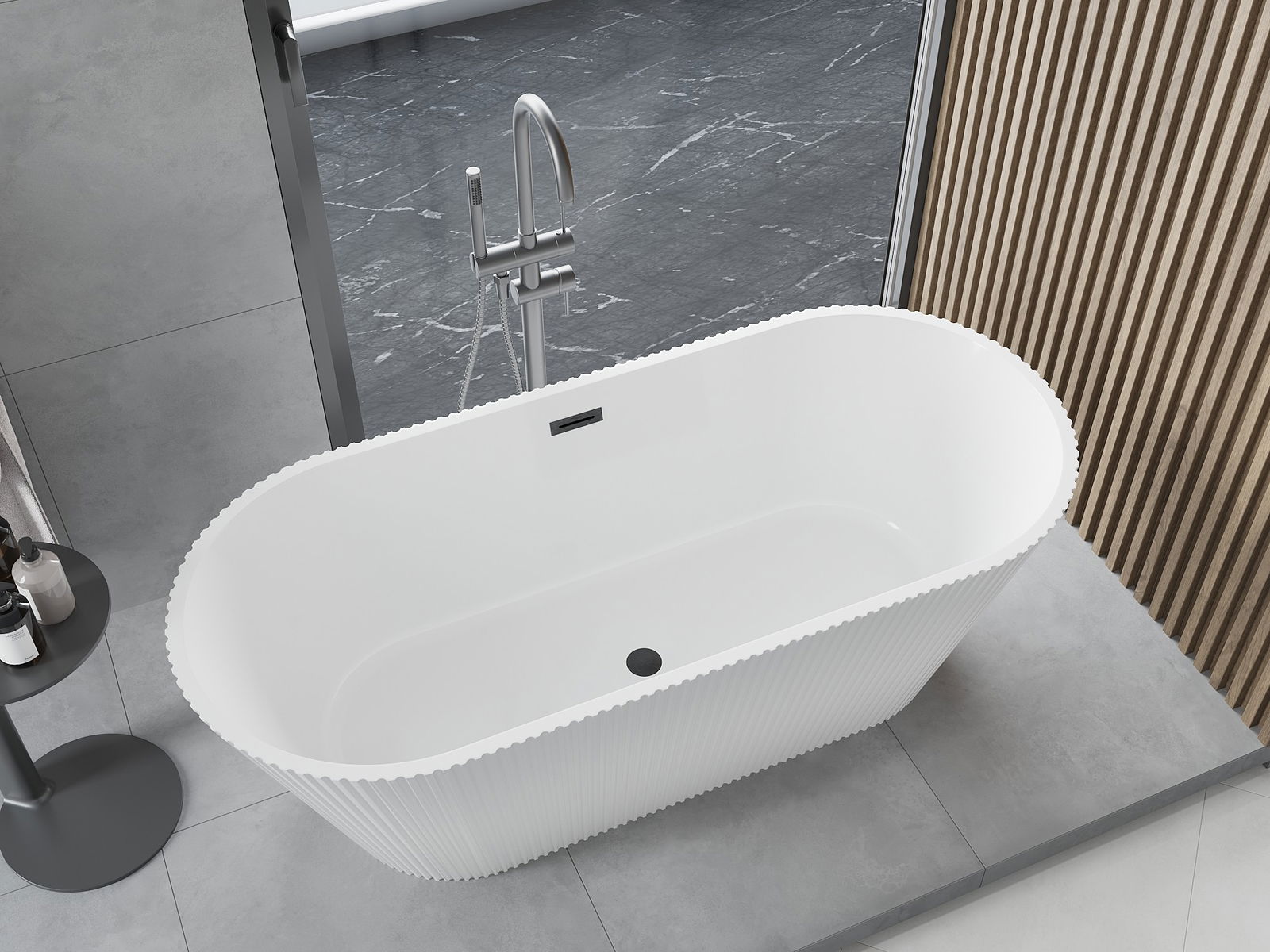 Je to moderný materiál, ktorý kombinuje elegantný vzhľad s vysokou trvanlivosťou. Je odolný proti mechanickému poškodeniu, ľahko sa čistí a je príjemný na dotyk. Transparentná forma a tenký okraj vane jej dodávajú ľahkosť a unikátny charakter, čím vytvárajú efektný prvok v usporiadaní kúpeľne.