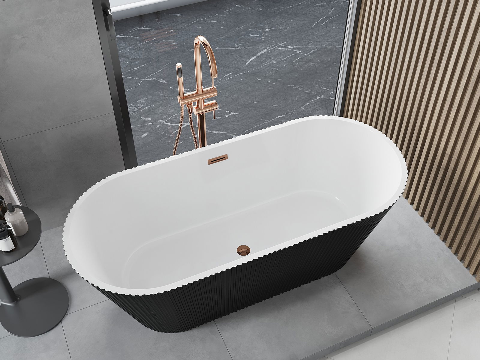 Je to moderný materiál, ktorý kombinuje elegantný vzhľad s vysokou trvanlivosťou. Je odolný proti mechanickému poškodeniu, ľahko sa čistí a je príjemný na dotyk. Transparentná forma a tenký okraj vane jej dodávajú ľahkosť a unikátny charakter, čím vytvárajú efektný prvok v usporiadaní kúpeľne.