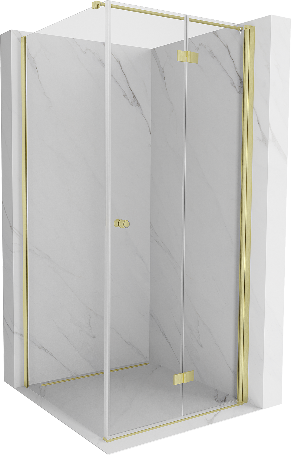 Mexen Mist-F skladacia sprchová kabína pravá 80 x 80 cm, transparentná, zlatá brúsená - 8A6T-080-080-55-00-P
