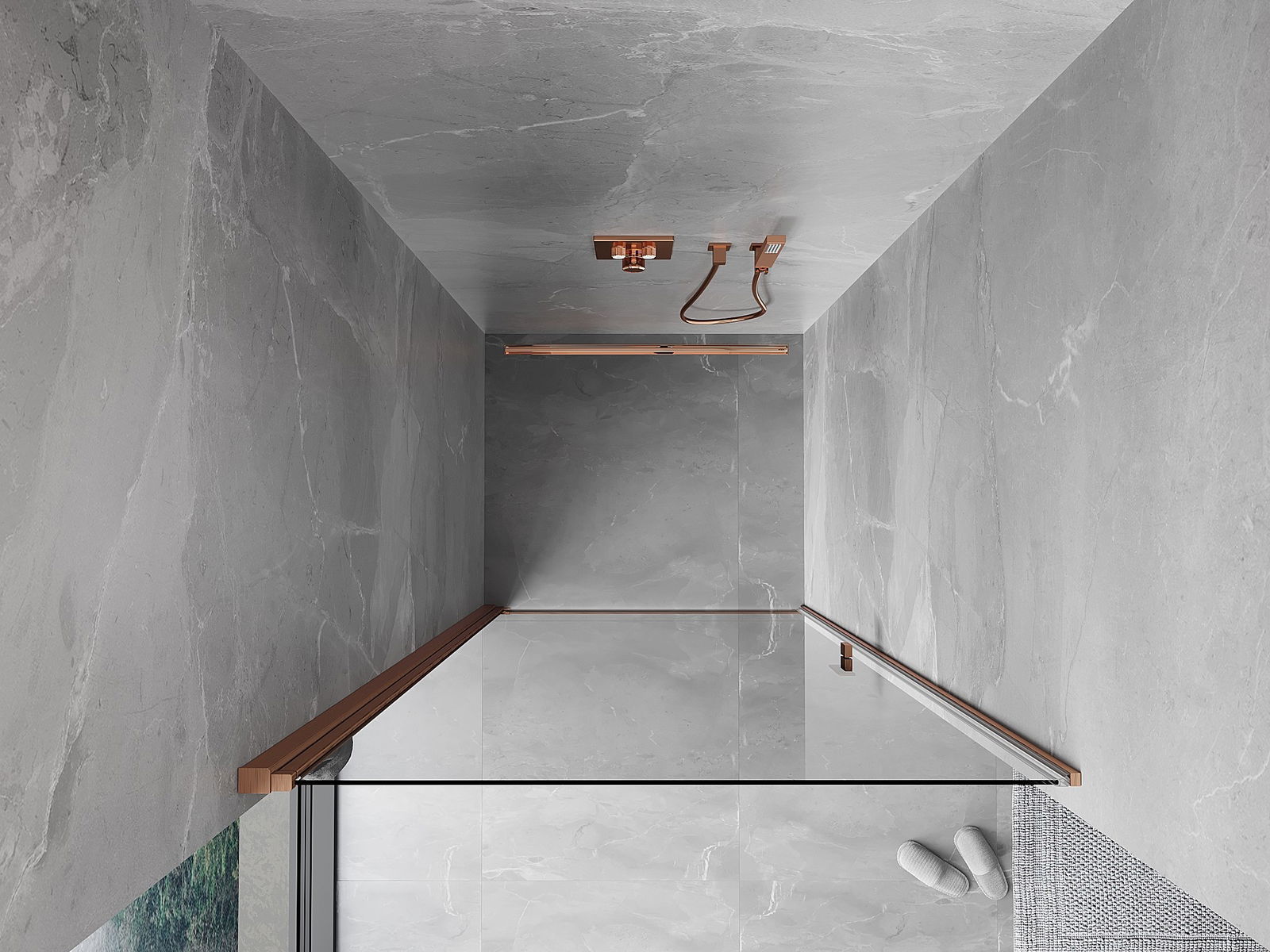 Praktická a pohodlná rukoväť je vyrobená z odolného a pevného kovu. Moderný tvar v kombinácii s povrchovou úpravou prispôsobenou farbe profilov dodáva celku moderný a štýlový vzhľad, zdôrazňujúc estetiku každej kúpeľne.