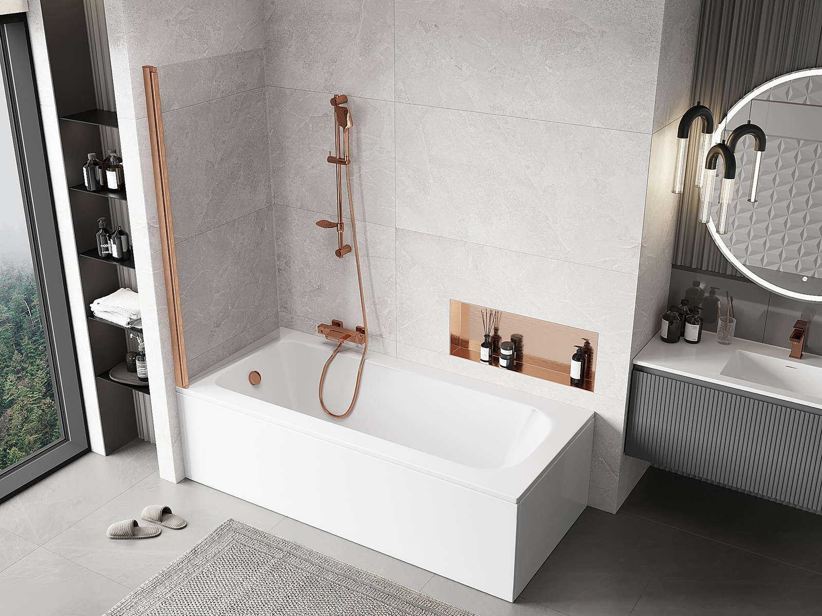 Paraván má jedno pohyblivé krídlo s možnosťou zloženia. Takéto riešenie umožňuje ušetriť viac miesta v kúpeľni a umožňuje voľné využívanie zvyšného priestoru, keď nepoužívame kúpeľňovú zónu.