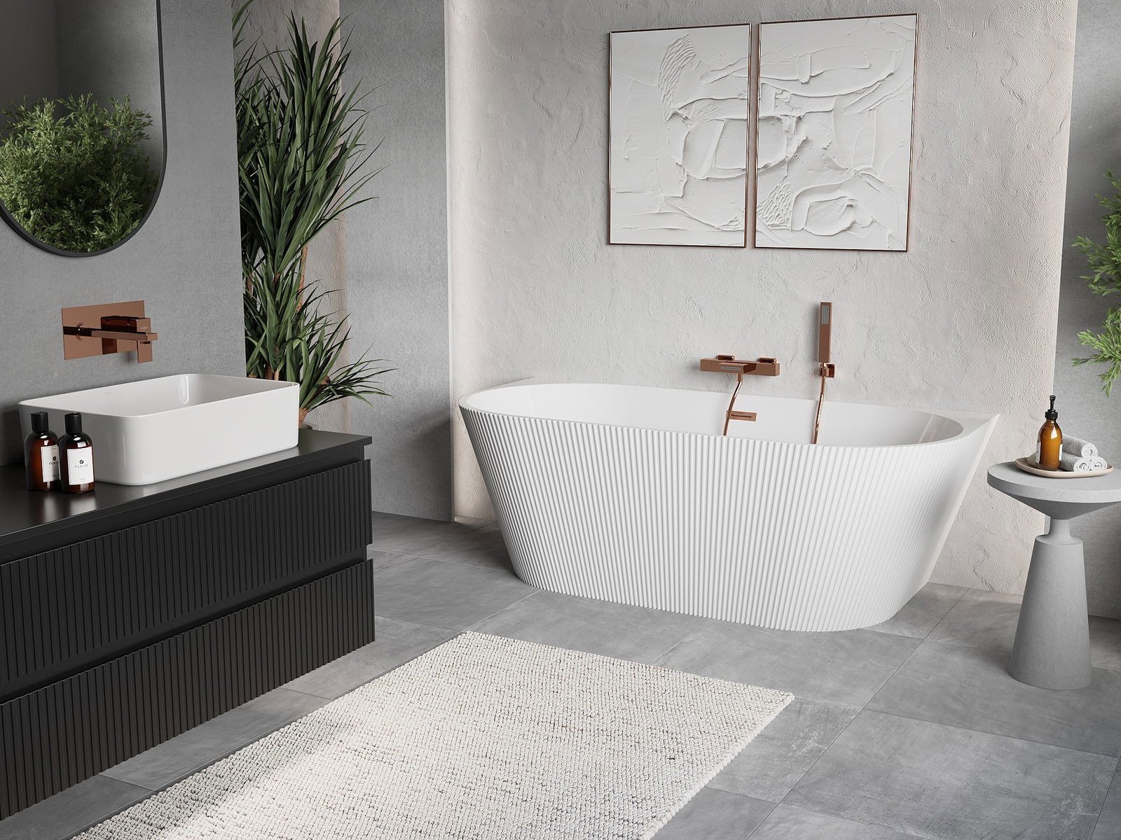 Je to moderný materiál, ktorý kombinuje elegantný vzhľad s vysokou trvanlivosťou. Je odolný proti mechanickému poškodeniu, ľahko sa čistí a je príjemný na dotyk. Transparentná forma a tenký okraj vane jej dodávajú ľahkosť a unikátny charakter, čím vytvárajú efektný prvok v usporiadaní kúpeľne.