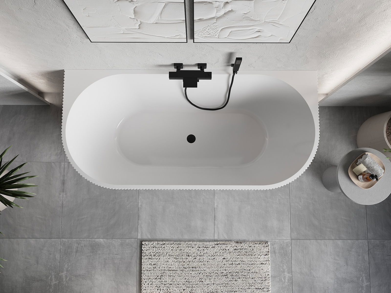 Je to moderný materiál, ktorý kombinuje elegantný vzhľad s vysokou trvanlivosťou. Je odolný proti mechanickému poškodeniu, ľahko sa čistí a je príjemný na dotyk. Transparentná forma a tenký okraj vane jej dodávajú ľahkosť a unikátny charakter, čím vytvárajú efektný prvok v usporiadaní kúpeľne.