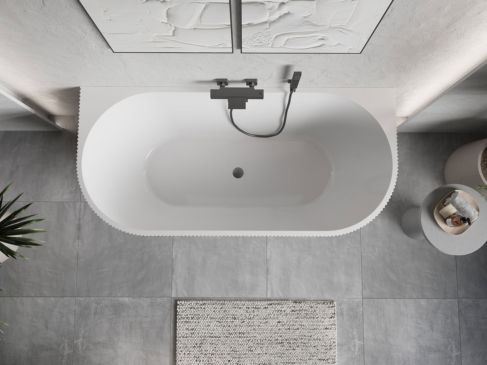 Je to moderný materiál, ktorý kombinuje elegantný vzhľad s vysokou trvanlivosťou. Je odolný proti mechanickému poškodeniu, ľahko sa čistí a je príjemný na dotyk. Transparentná forma a tenký okraj vane jej dodávajú ľahkosť a unikátny charakter, čím vytvárajú efektný prvok v usporiadaní kúpeľne.