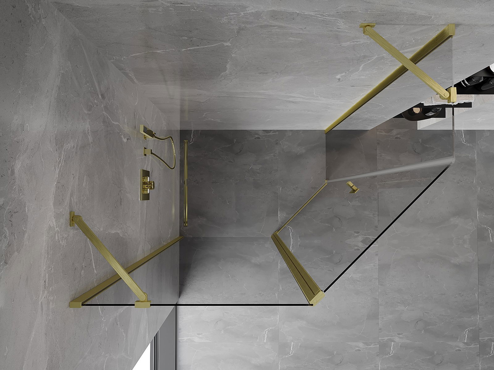 Mexen Mist asymetrická pätuholníková sprchová kabína, výklopná 90 x 80 cm, transparentná, matná zlatá - 8A8-090-080-55-00