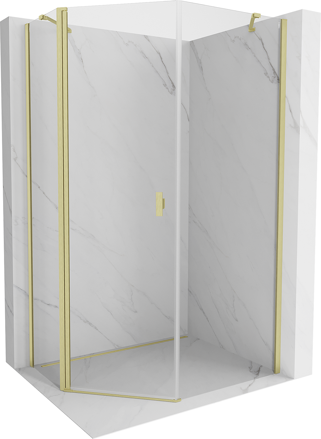 Mexen Mist asymetrická päťuholníková sprchová kabína otočná 80 x 100 cm, transparentná, zlatá kartáčovaná