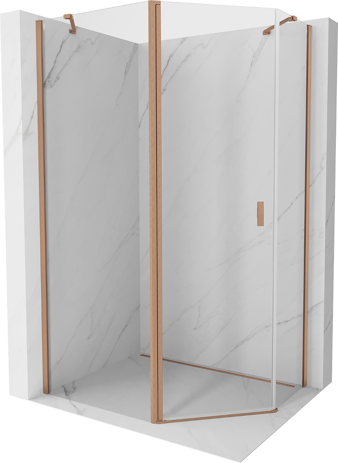 Mexen Mist asymetrický pätuholníkový sprchový kút s otočnými dverami 100 x 80 cm, priehľadný, brúsená meď - 8A8-100-080-65-00