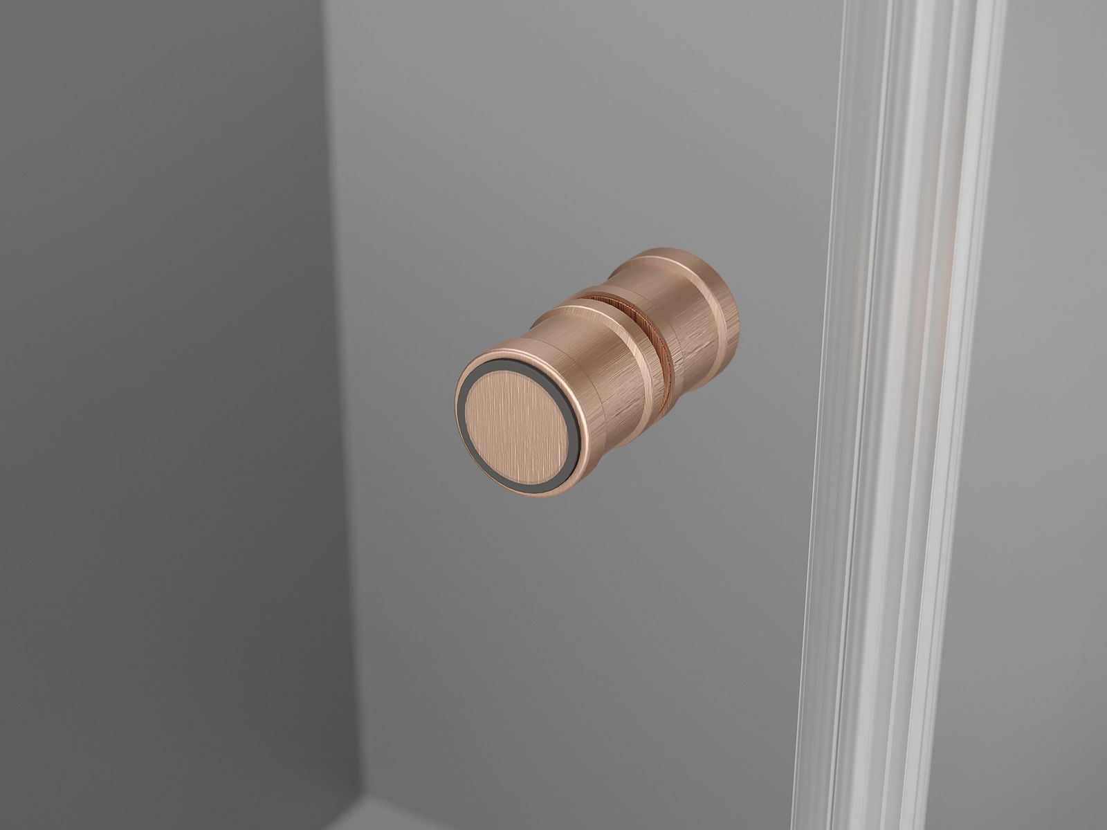 Praktická a pohodlná rukoväť je vyrobená z odolného a pevného kovu. Moderný tvar v kombinácii s povrchovou úpravou prispôsobenou farbe profilov dodáva celku moderný a štýlový vzhľad, zdôrazňujúc estetiku každej kúpeľne.