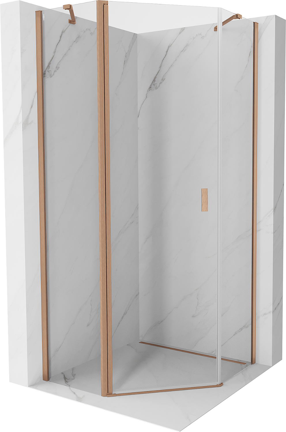Mexen Mist päťuholníková sprchová kabína 100 x 100 cm, transparentná, kartáčovaná meď - 8A8-100-100-65-00
