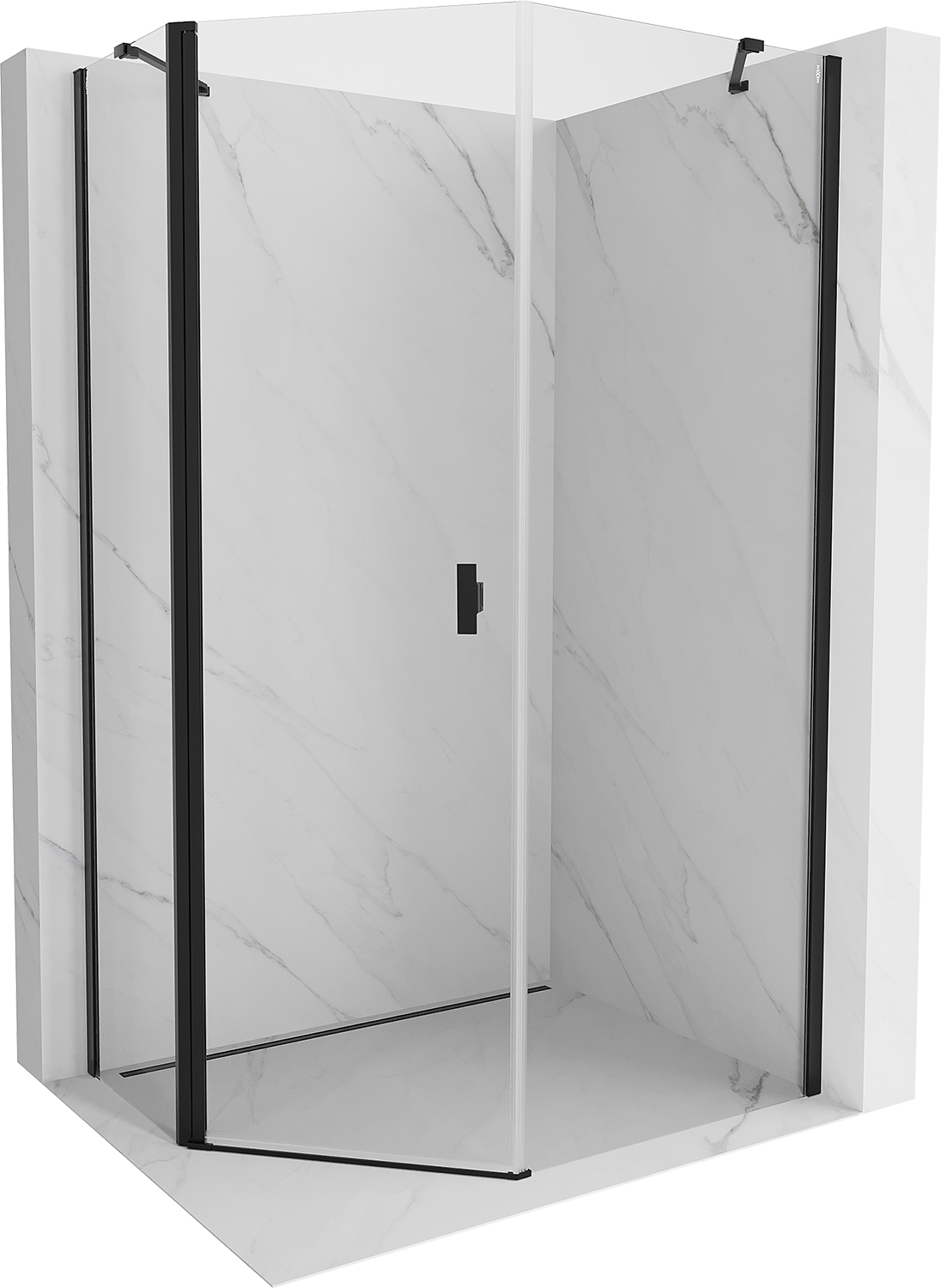 Mexen Mist päťuholníkový asymetrický sprchovací kút otvárací 80 x 90 cm, transparentný, čierny - 8A8-080-090-70-00