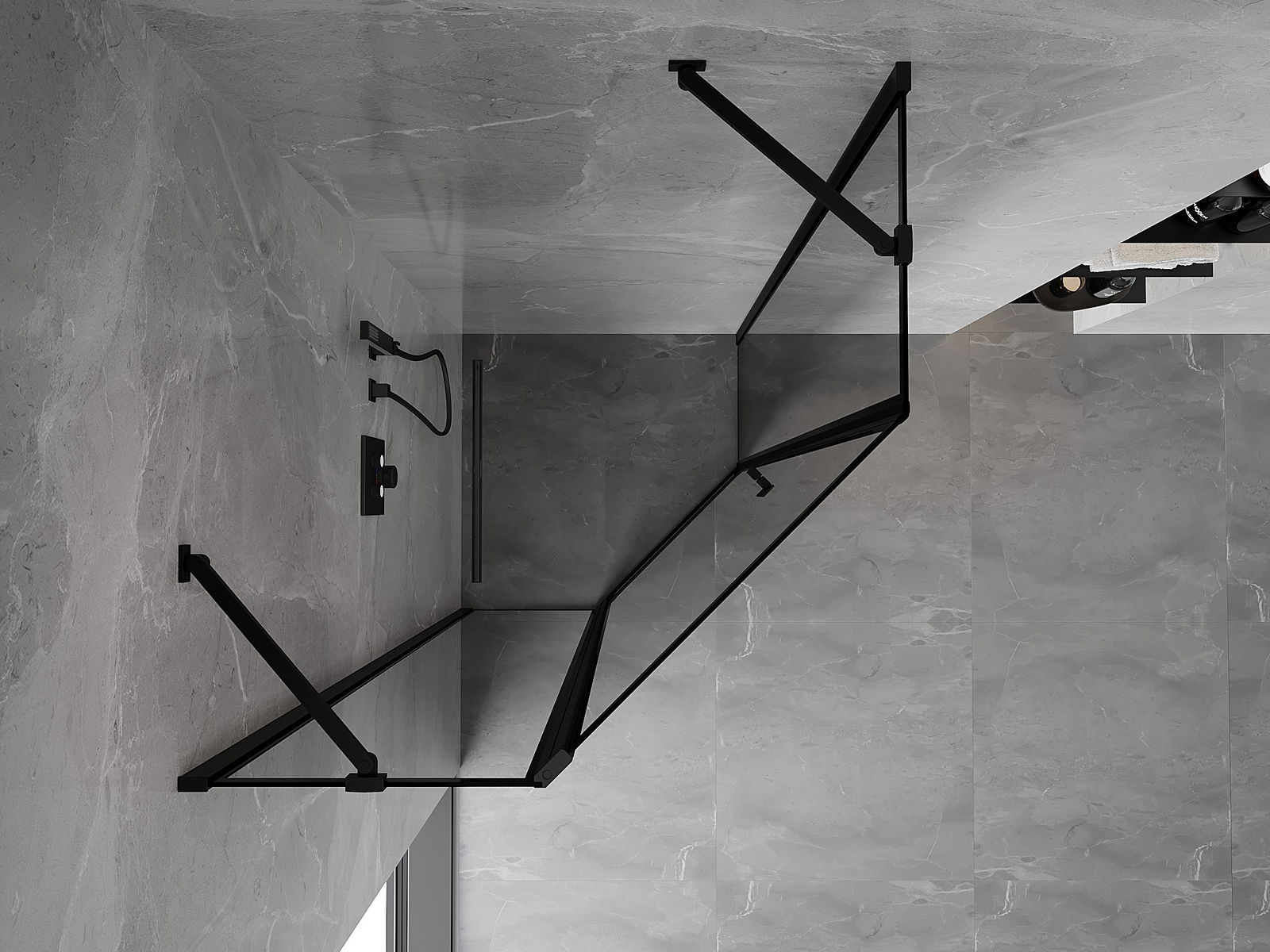 Mexen Mist päťuholníková sprchová kabína s otváracími dverami ľavá 90 x 90 cm, čierny rám, čierna - 8A8-090-090-70-70-L