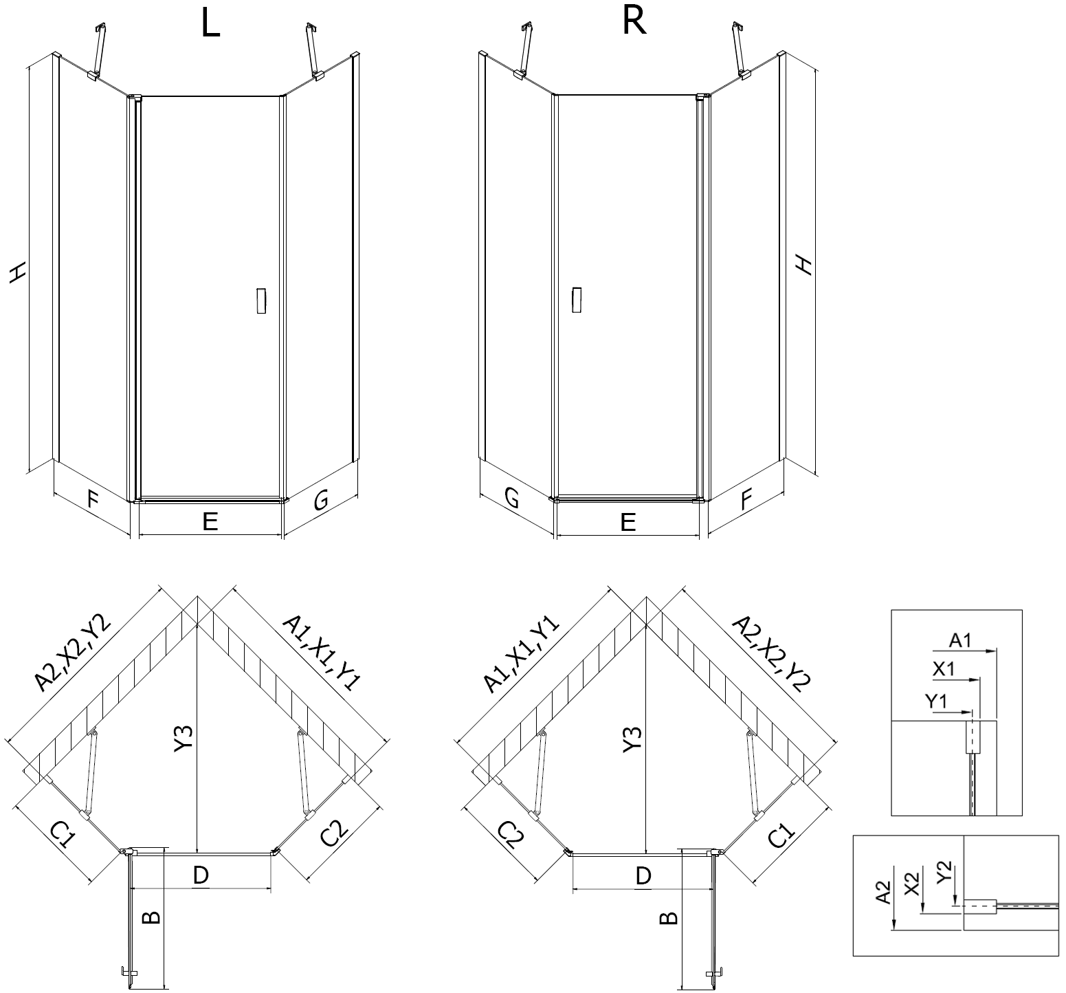 Veľkosť: 90x100 cm (ľavé dvere 90 cm, stena 100 cm)
