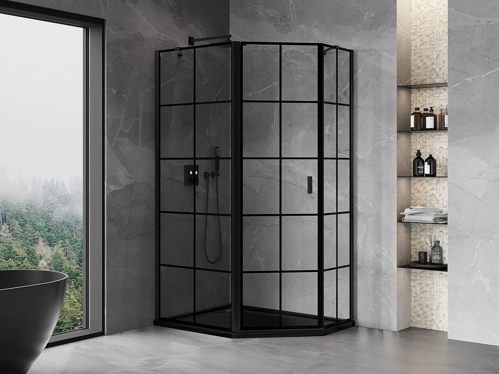 Mexen Mist asymetrická päťuholníková sprchová kabína ľavá 100 x 90 cm, čierna mriežka, čierna - 8A8-100-090-70-77-L