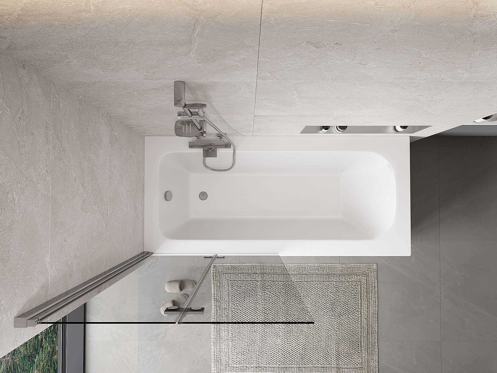 Paraván vyrobený z dvoch krídel s možnosťou zloženia. Takéto riešenie umožňuje ušetriť viac miesta v kúpeľni a umožňuje voľné využitie zvyšného priestoru, keď nepoužívame kúpeľnú zónu.