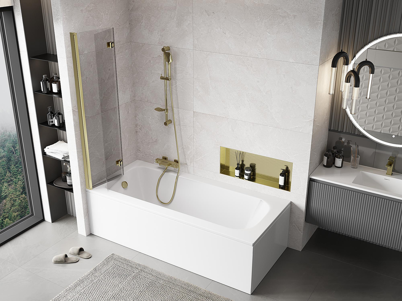 Paraván vyrobený z dvoch krídel s možnosťou zloženia. Takéto riešenie umožňuje ušetriť viac miesta v kúpeľni a umožňuje voľné využitie zvyšného priestoru, keď nepoužívame kúpeľnú zónu.
