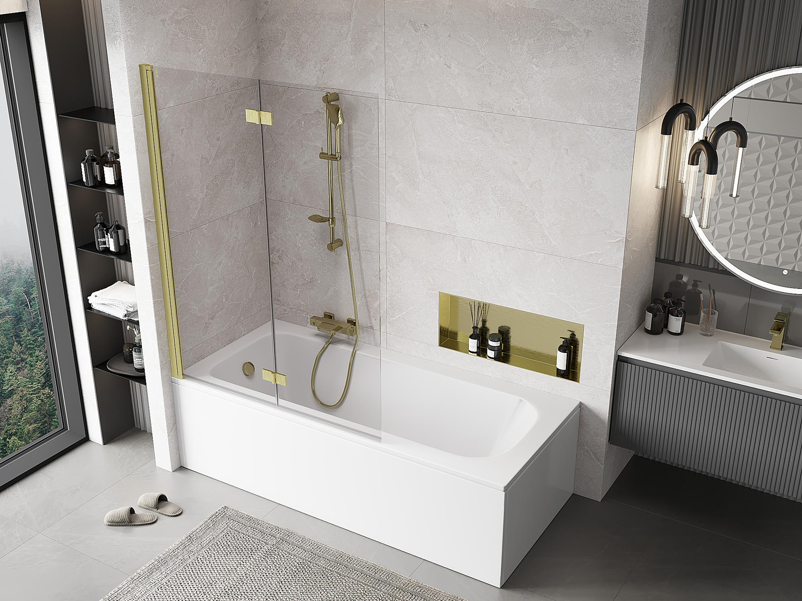 Paraván vyrobený z dvoch krídel s možnosťou zloženia. Takéto riešenie umožňuje ušetriť viac miesta v kúpeľni a umožňuje voľné využitie zvyšného priestoru, keď nepoužívame kúpeľnú zónu.