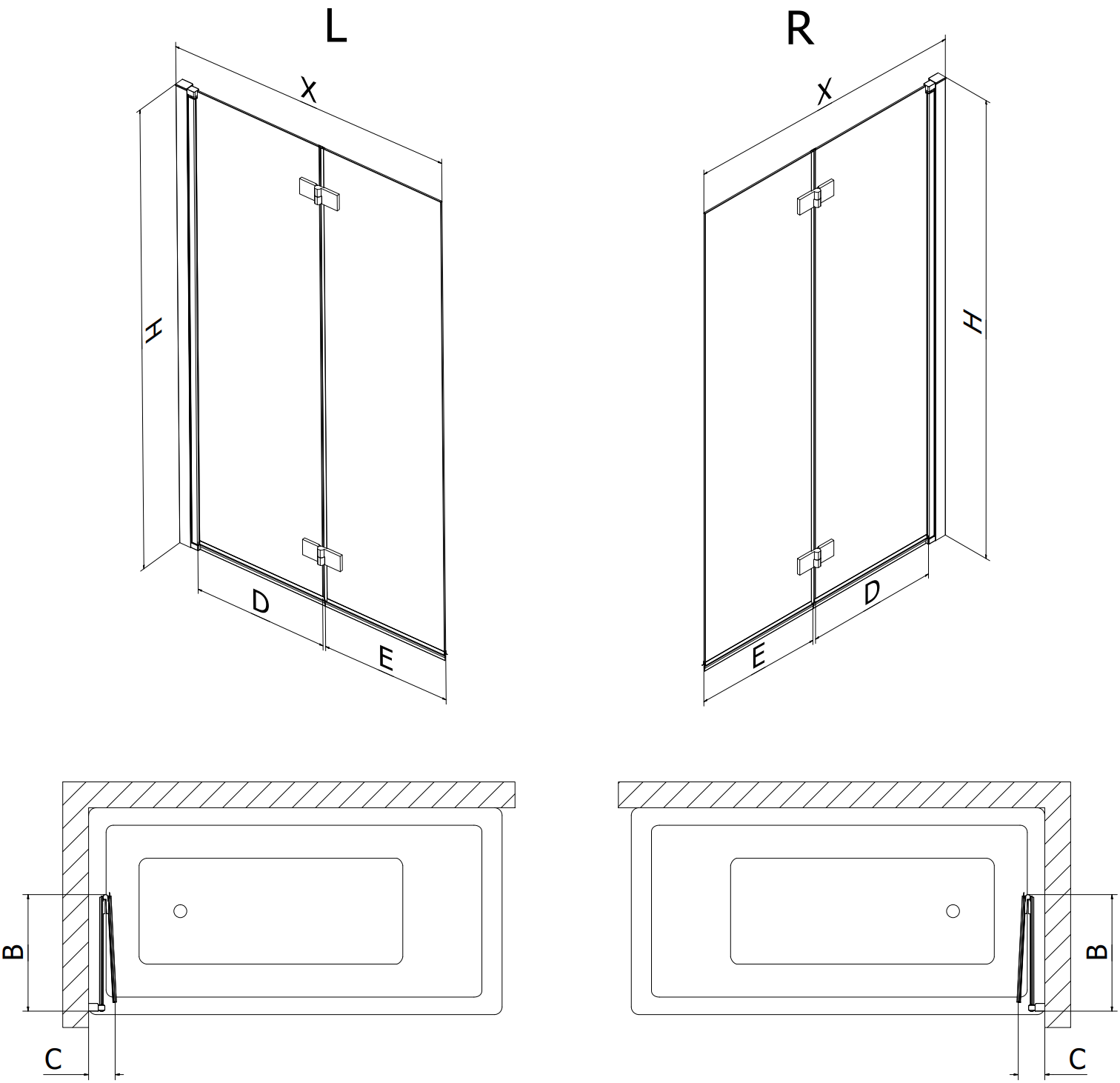 Paraván vyrobený z dvoch krídel s možnosťou zloženia. Takéto riešenie umožňuje ušetriť viac miesta v kúpeľni a umožňuje voľné využitie zvyšného priestoru, keď nepoužívame kúpeľnú zónu.