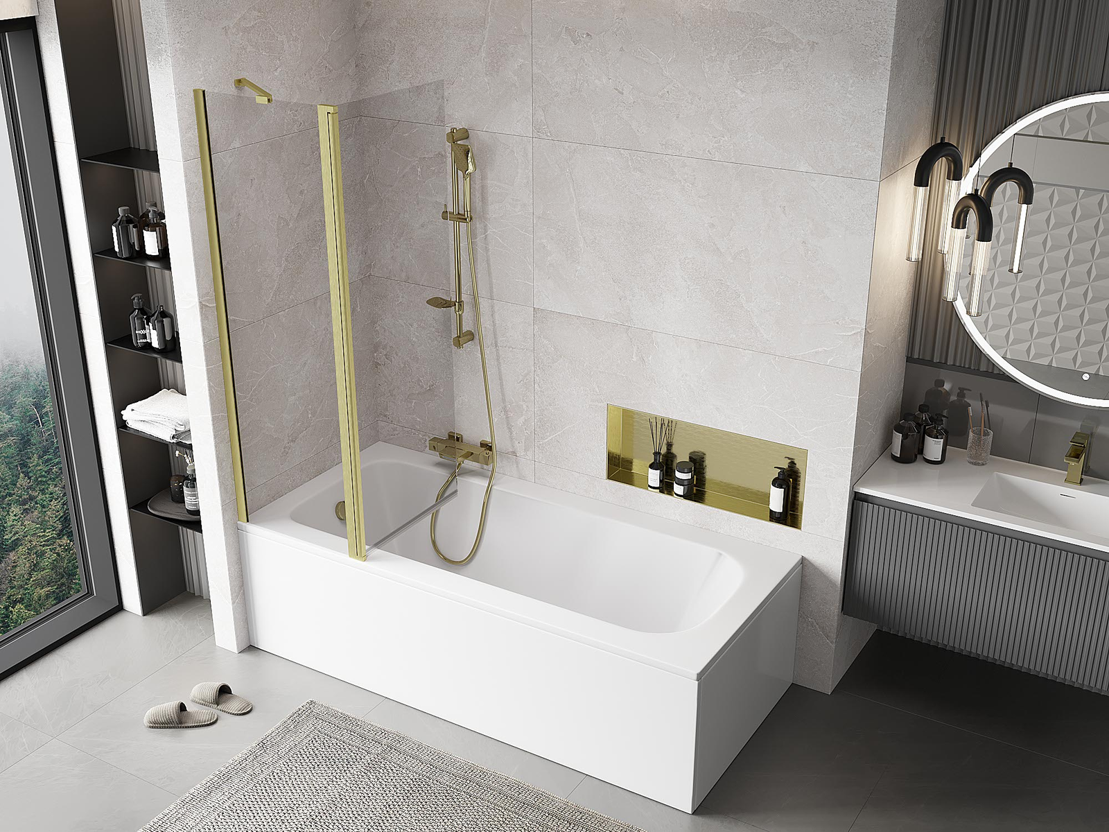 Paraván vyrobený z dvoch krídel s možnosťou zloženia. Takéto riešenie umožňuje ušetriť viac miesta v kúpeľni a umožňuje voľné využitie zvyšného priestoru, keď nepoužívame kúpeľnú zónu.