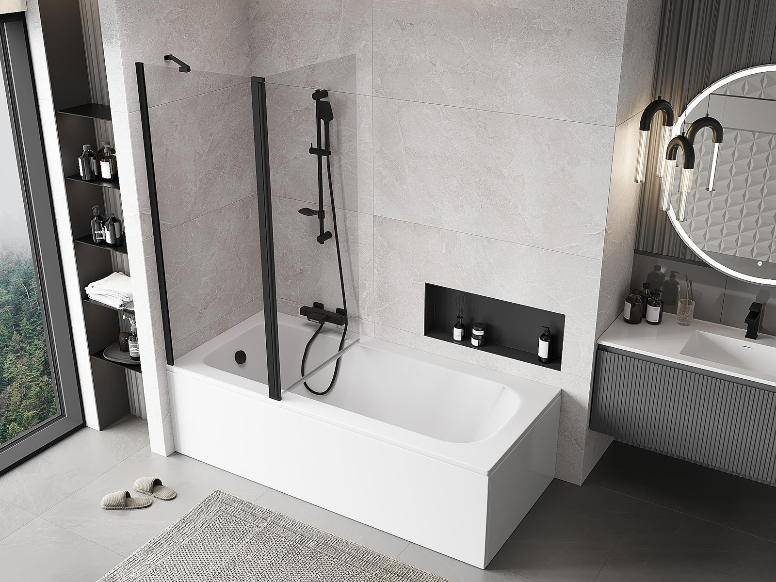 Paraván vyrobený z dvoch krídel s možnosťou zloženia. Takéto riešenie umožňuje ušetriť viac miesta v kúpeľni a umožňuje voľné využitie zvyšného priestoru, keď nepoužívame kúpeľnú zónu.