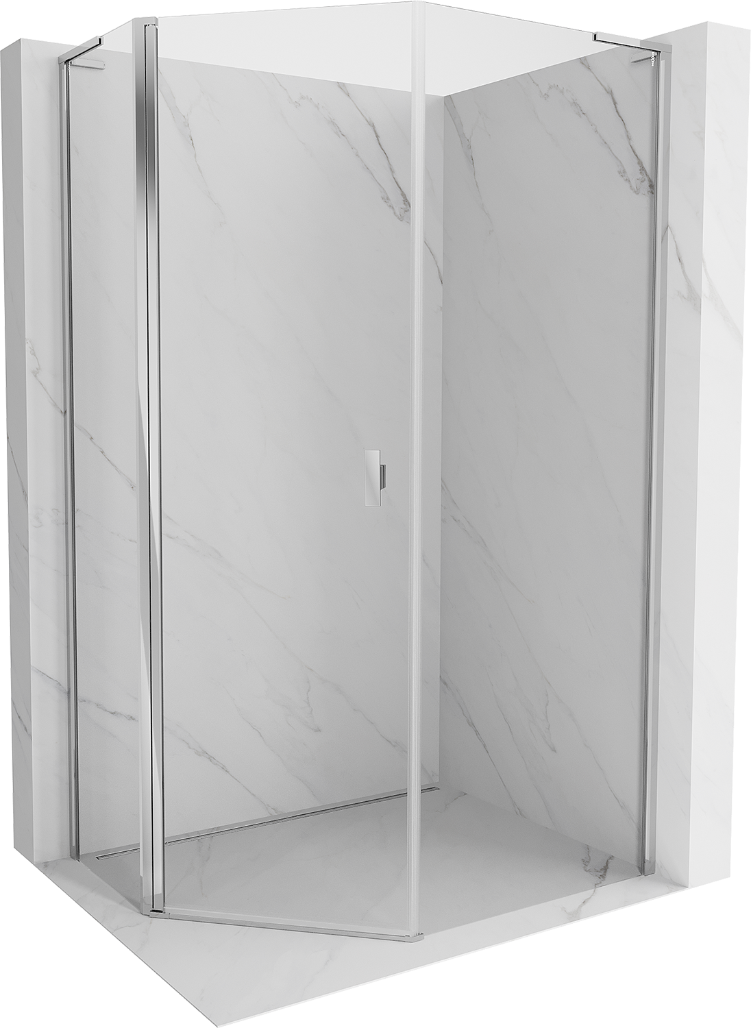 Mexen Mist L asymetrická päťuholníková sprchová kabína s otočnými dverami 80 x 90 cm, transparentná, chróm - 8A8L-080-090-01-00