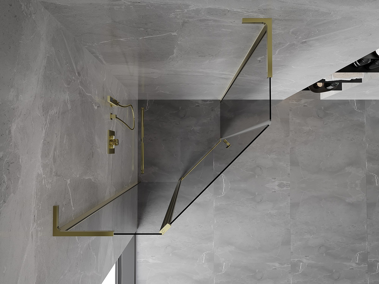 Mexen Mist L päťuholníková sprchová kabína s otváracími dverami 100 x 100 cm, transparentná, zlatá - 8A8L-100-100-50-00