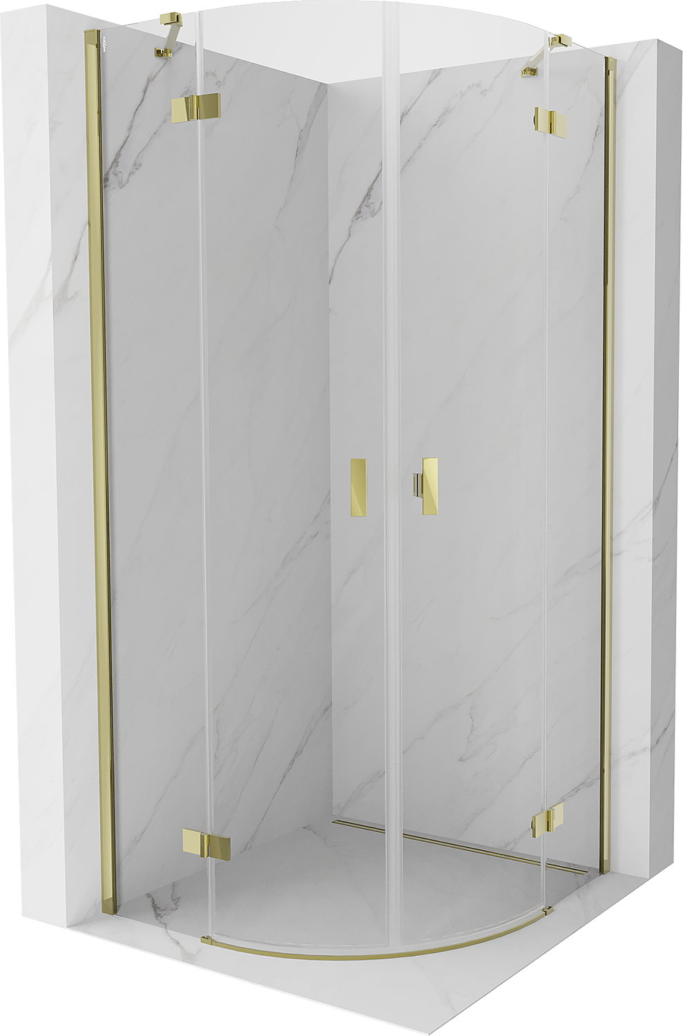 Mexen Mist polkruhová sprchová kabína s otočnými dverami 80 x 80 cm, transparentná, zlatá - 8A33-080-080-50-00