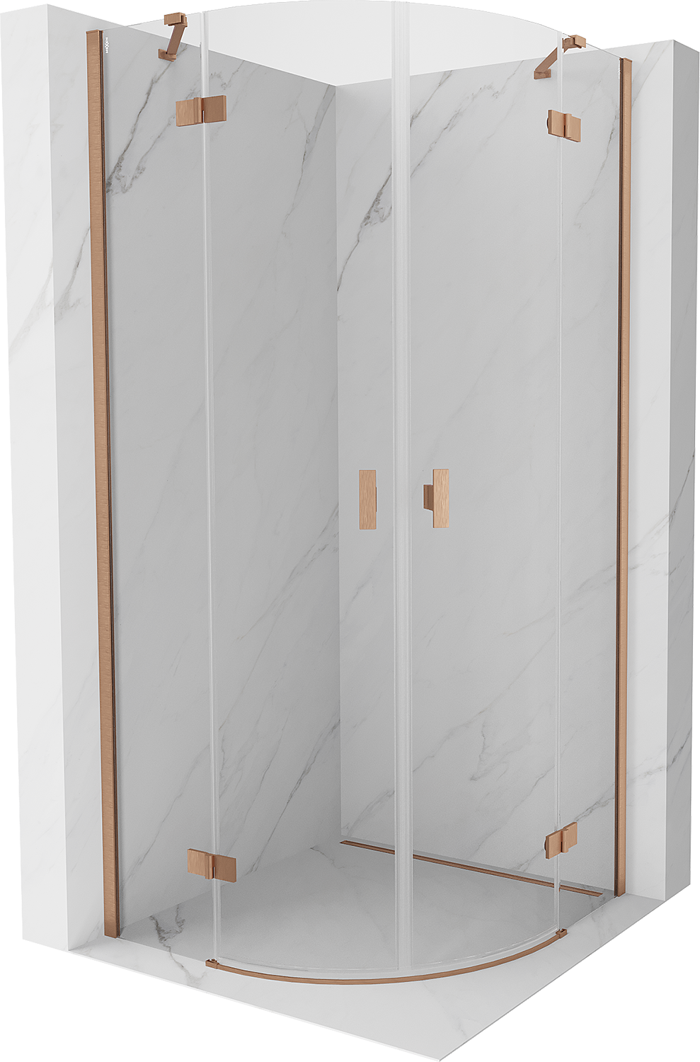 Mexen Mist polkruhová sprchová kabína s výklopnými dverami 70 x 70 cm, transparentná, brúsená meď - 8A33-070-070-65-00