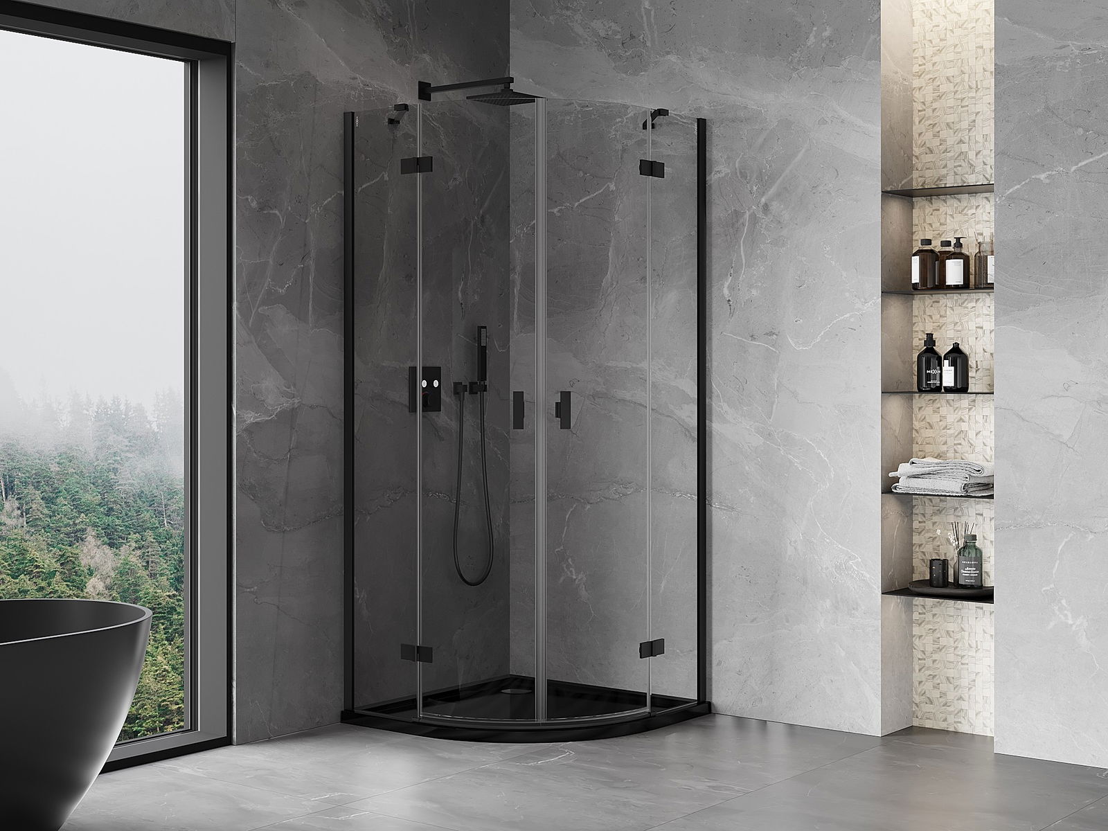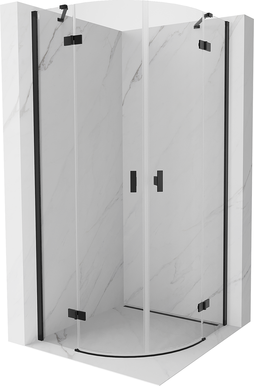 Mexen Mist sprchovací kút polkruhový výklopný 90 x 90 cm, transparentný, čierny - 8A33-090-090-70-00
