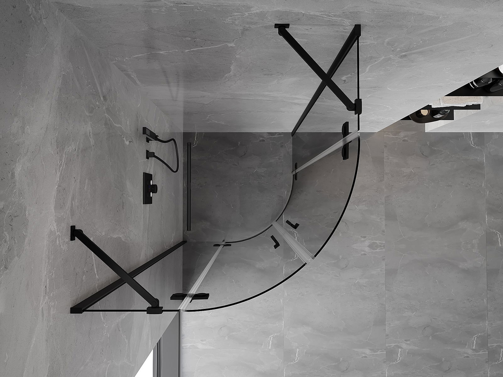 Praktická a pohodlná rukoväť je vyrobená z odolného a pevného kovu. Moderný tvar v kombinácii s povrchovou úpravou prispôsobenou farbe profilov dodáva celku moderný a štýlový vzhľad, zdôrazňujúc estetiku každej kúpeľne.