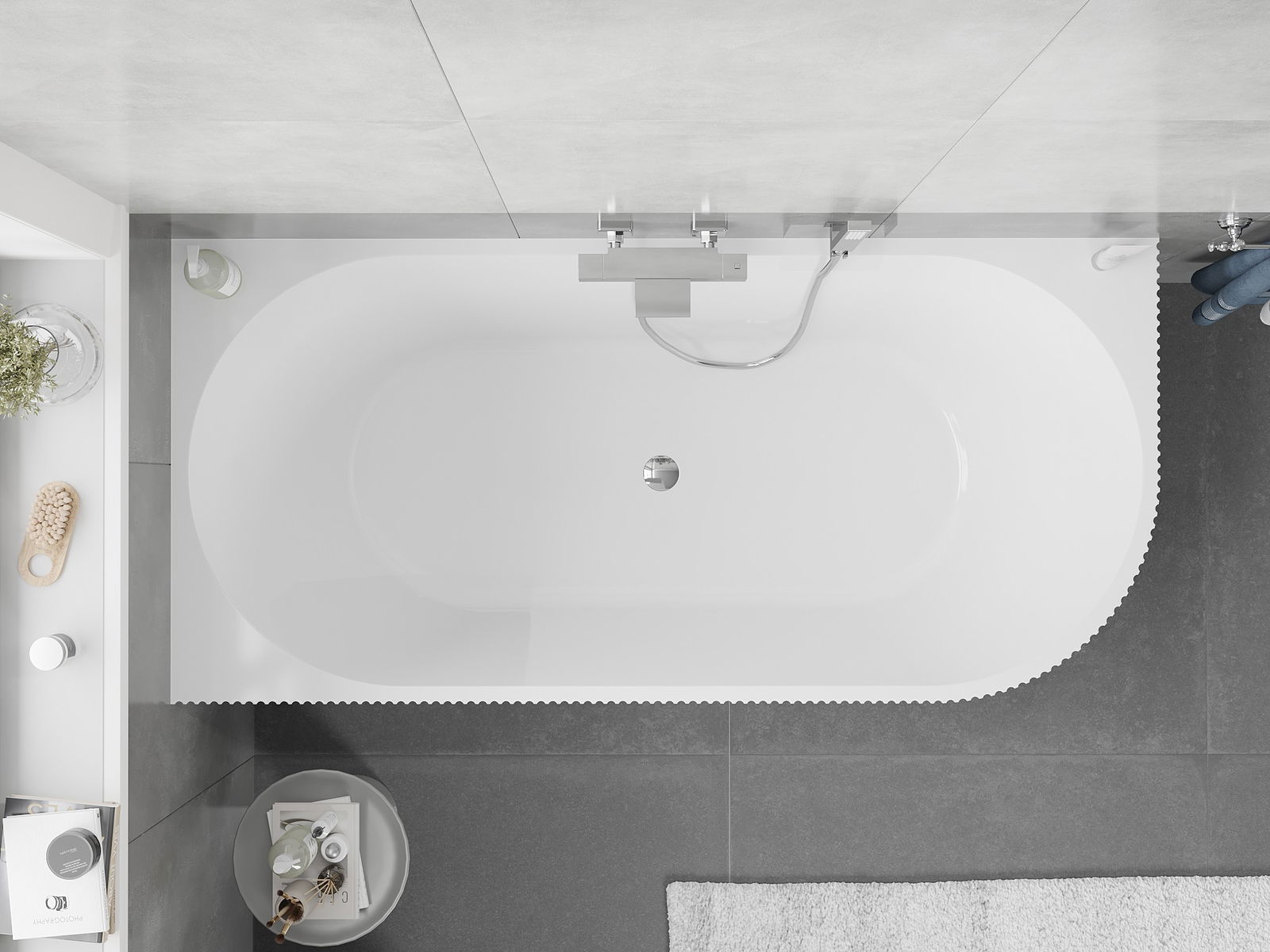 Je to moderný materiál, ktorý kombinuje elegantný vzhľad s vysokou trvanlivosťou. Je odolný proti mechanickému poškodeniu, ľahko sa čistí a je príjemný na dotyk. Transparentná forma a tenký okraj vane jej dodávajú ľahkosť a unikátny charakter, čím vytvárajú efektný prvok v usporiadaní kúpeľne.