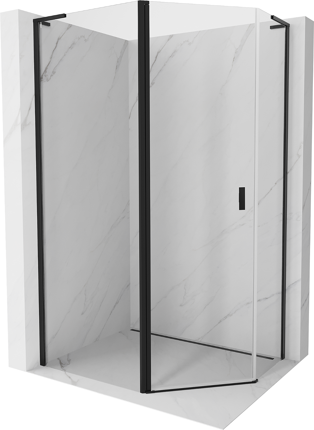 Mexen Mist L Päťuholníkový Asymetrický Sprchový Kút 90 x 80 cm, Transparentný, Čierny - 8A8L-090-080-70-00