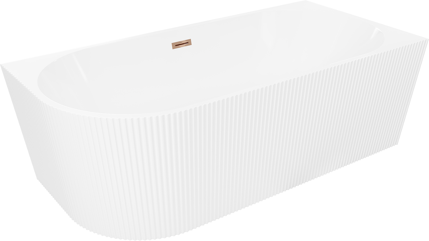 Mexen Silo voľne stojaca rohová pravá ryhovaná vaňa 150 x 75 cm, biela, prepad: ružové zlato - 52891507500P-60