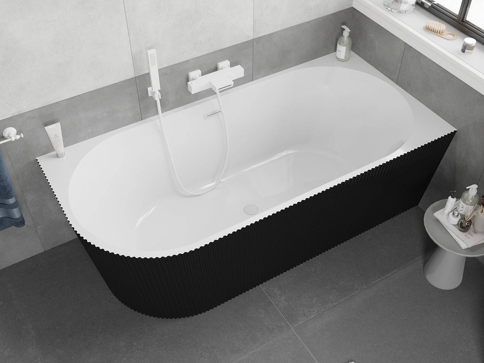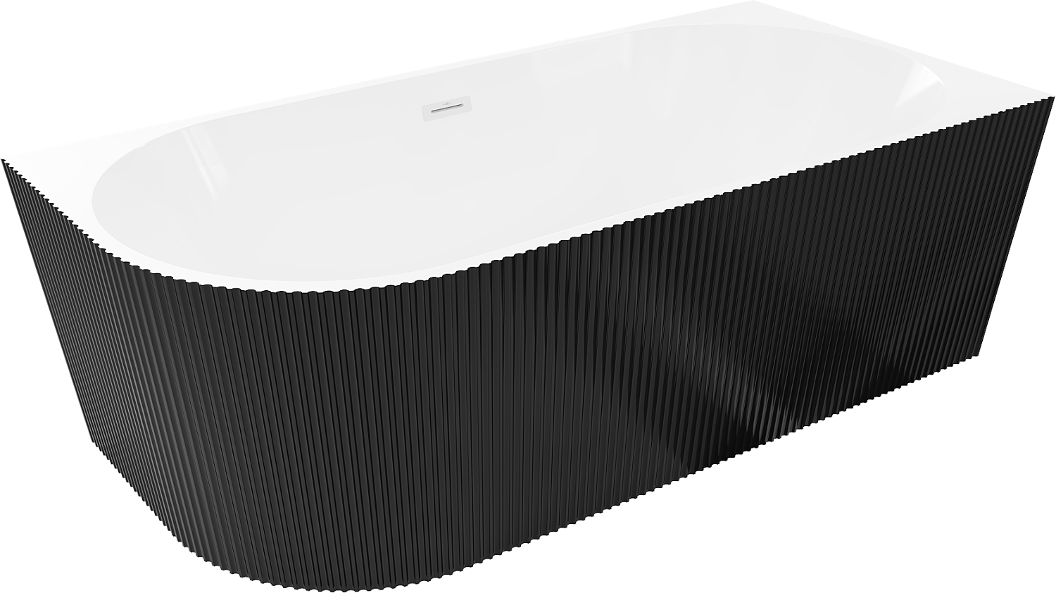 Mexen Silo voľne stojaca rohová vaňa pravá ryhovaná 150 x 75 cm, biela/čierna, biely preliv - 52891507575P-20