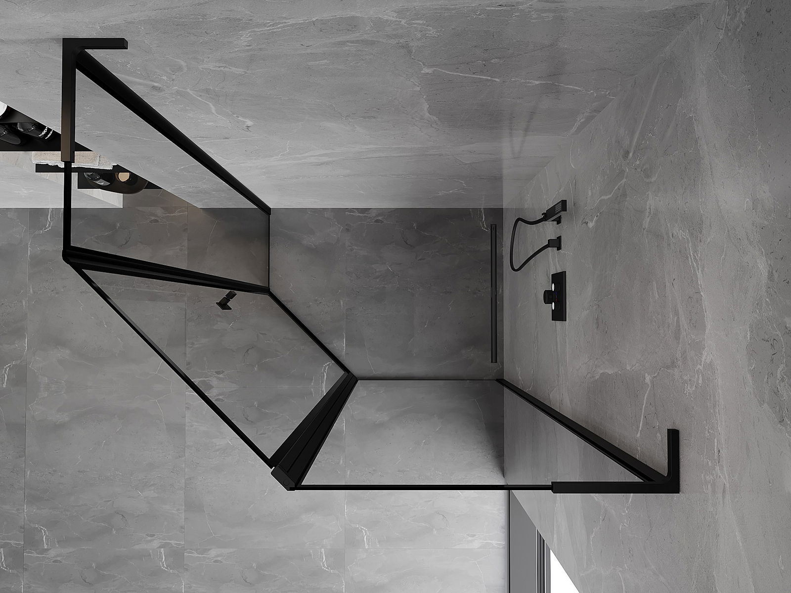 Mexen Mist L asymetrická pravouhlá sprchová kabína päťuholníková 100 x 80 cm, čierny rám, čierny - 8A8L-100-080-70-70-P