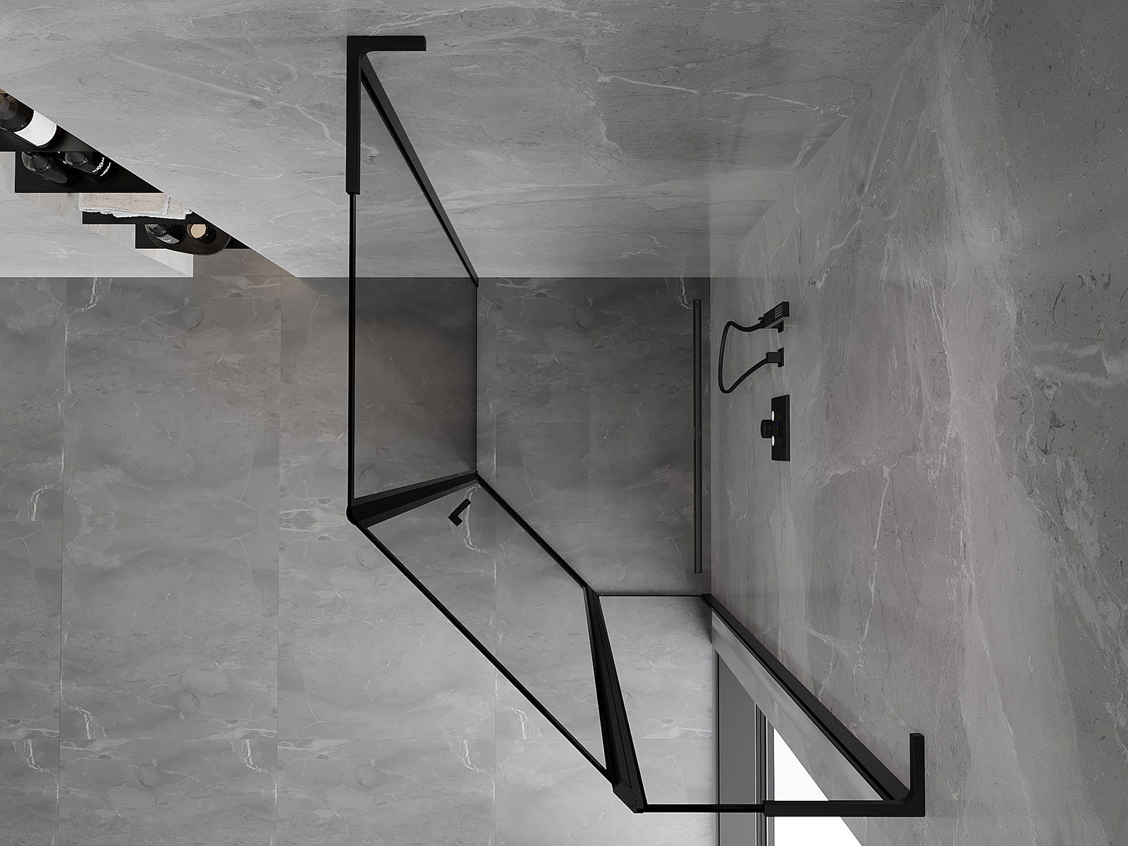 Mexen Mist L asymetrická pätstenná sprchová kabína s pravými dverami 80 x 100 cm, čierny rám, čierna