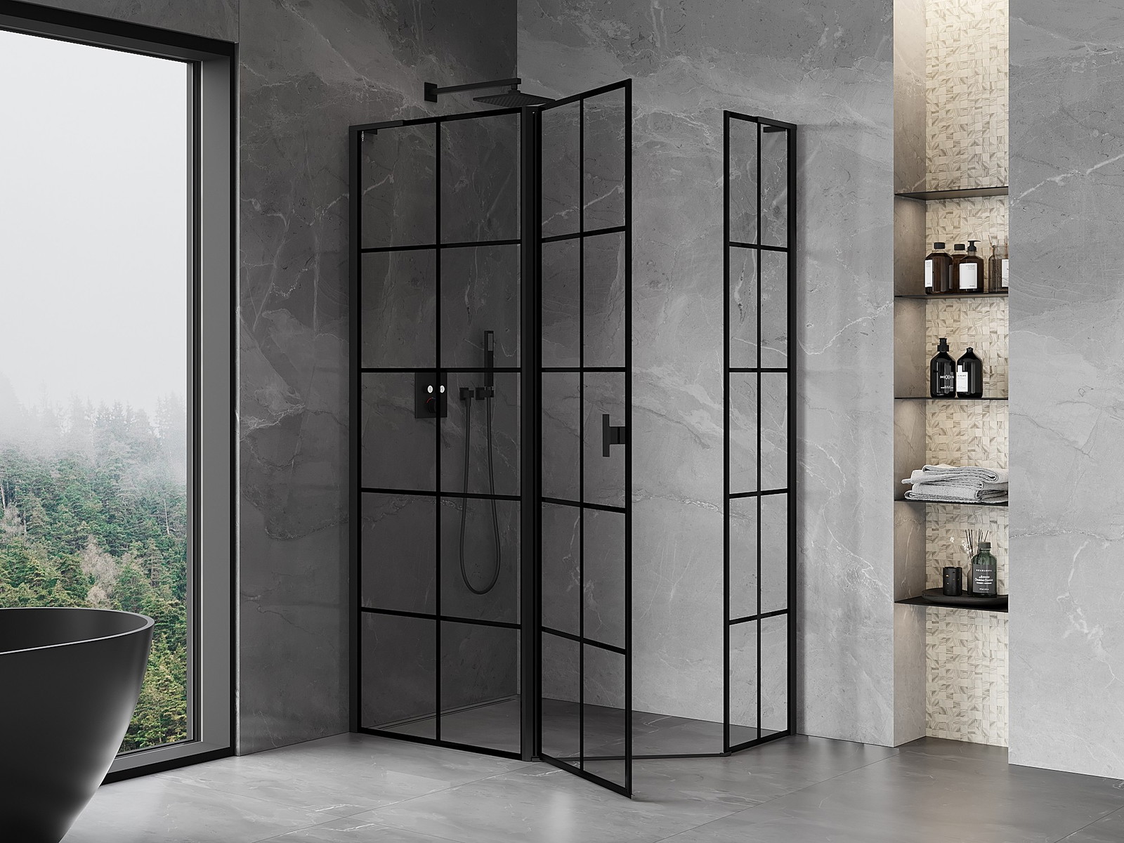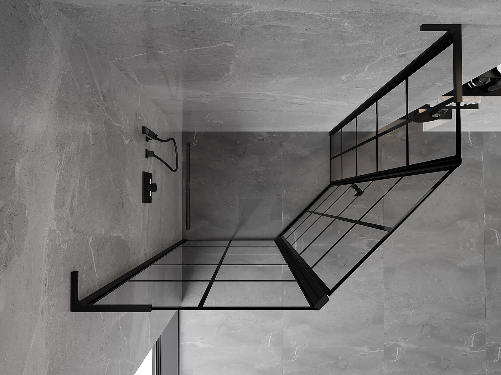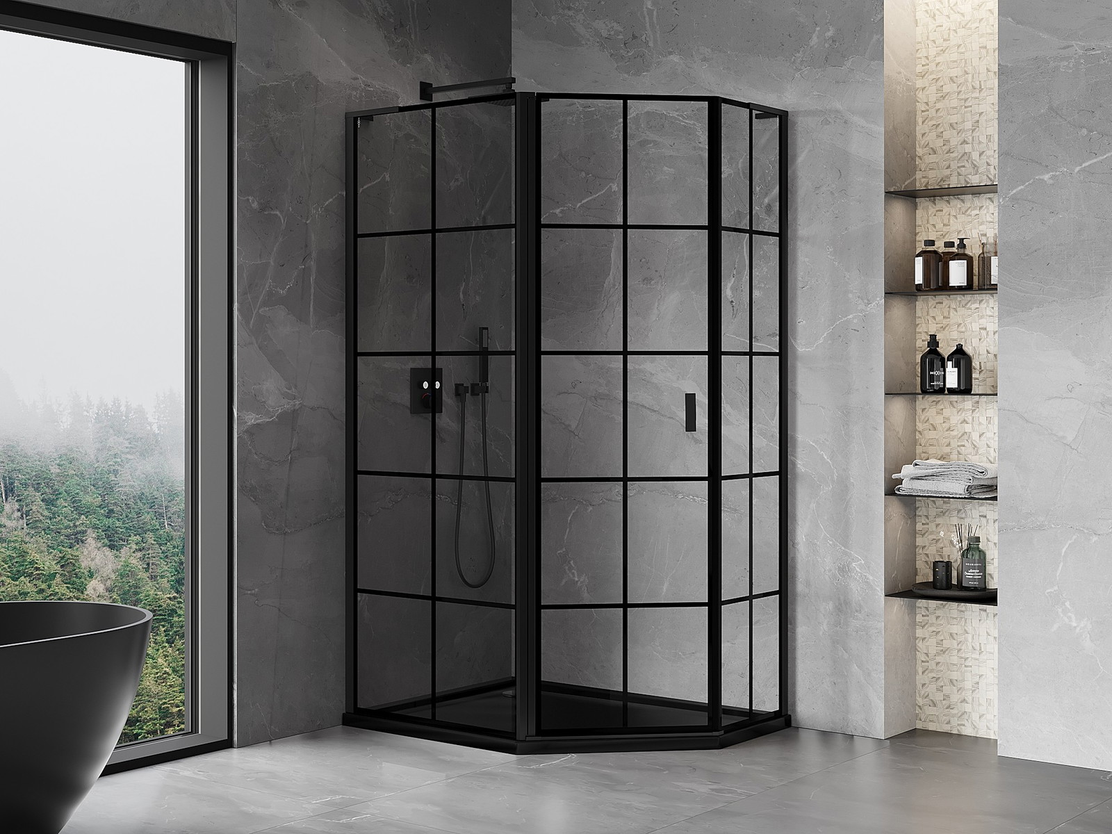 Mexen Mist L asymetrická päťuholníková sprchová kabína, ľavá 100 x 80 cm, čierna mriežka, čierna - 8A8L-100-080-70-77-L