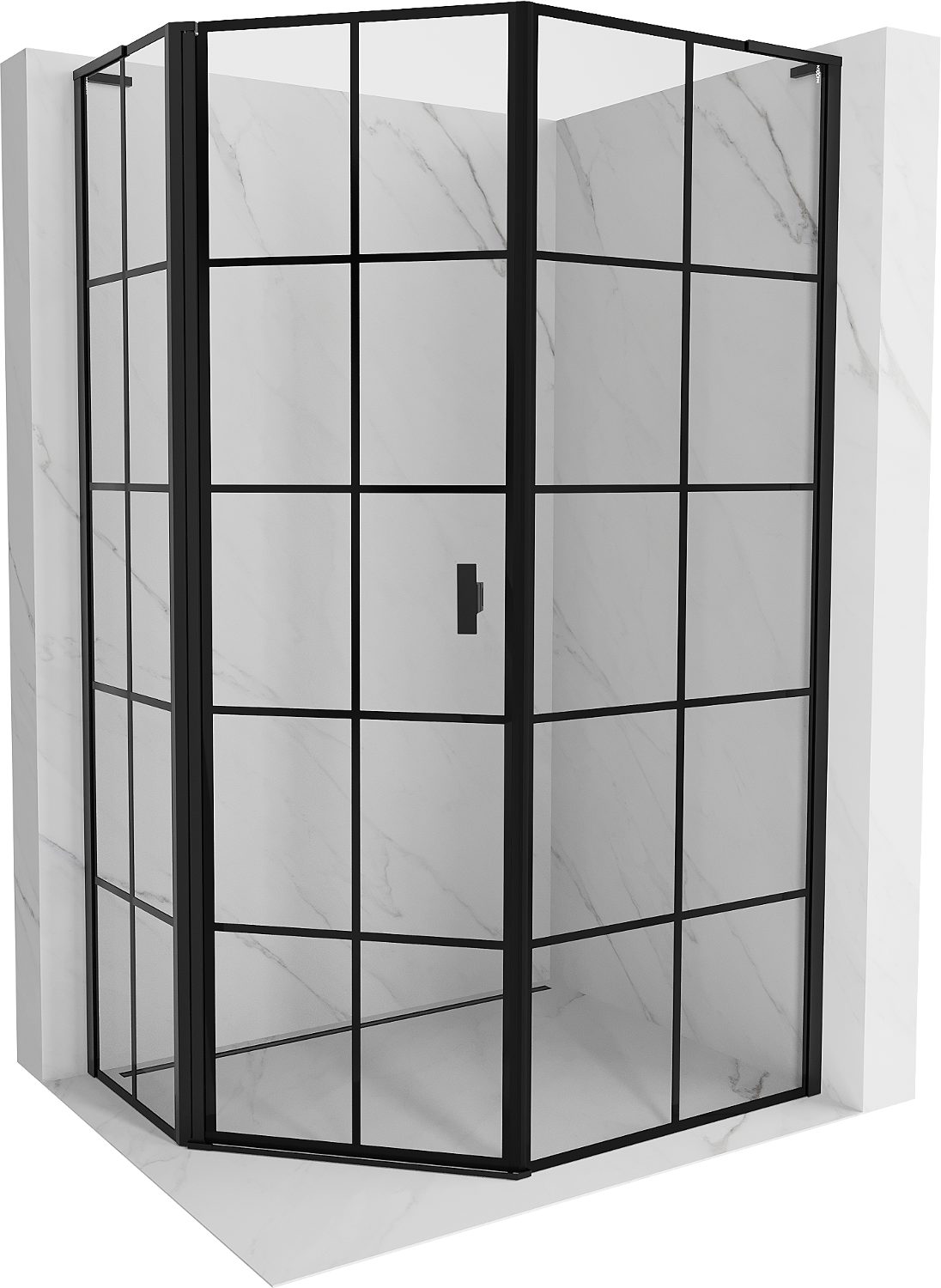 Mexen Mist L asymetrická päťuholníková sprchová kabína otváracia ľavá 80 x 90 cm, čierna mriežka, čierna