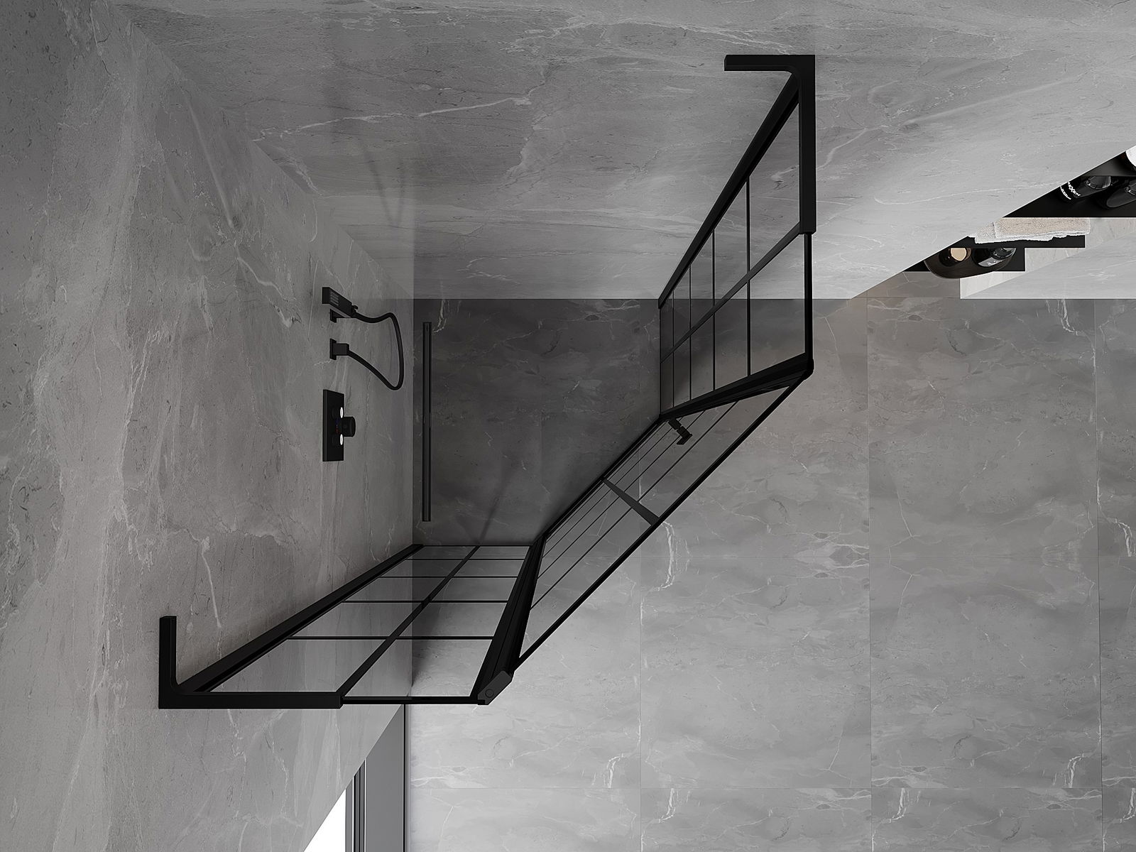 Mexen Mist L päťuholníkový sprchový kút, ľavý otváravý, 90 x 90 cm, čierna mriežka, čierna - 8A8L-090-090-70-77-L