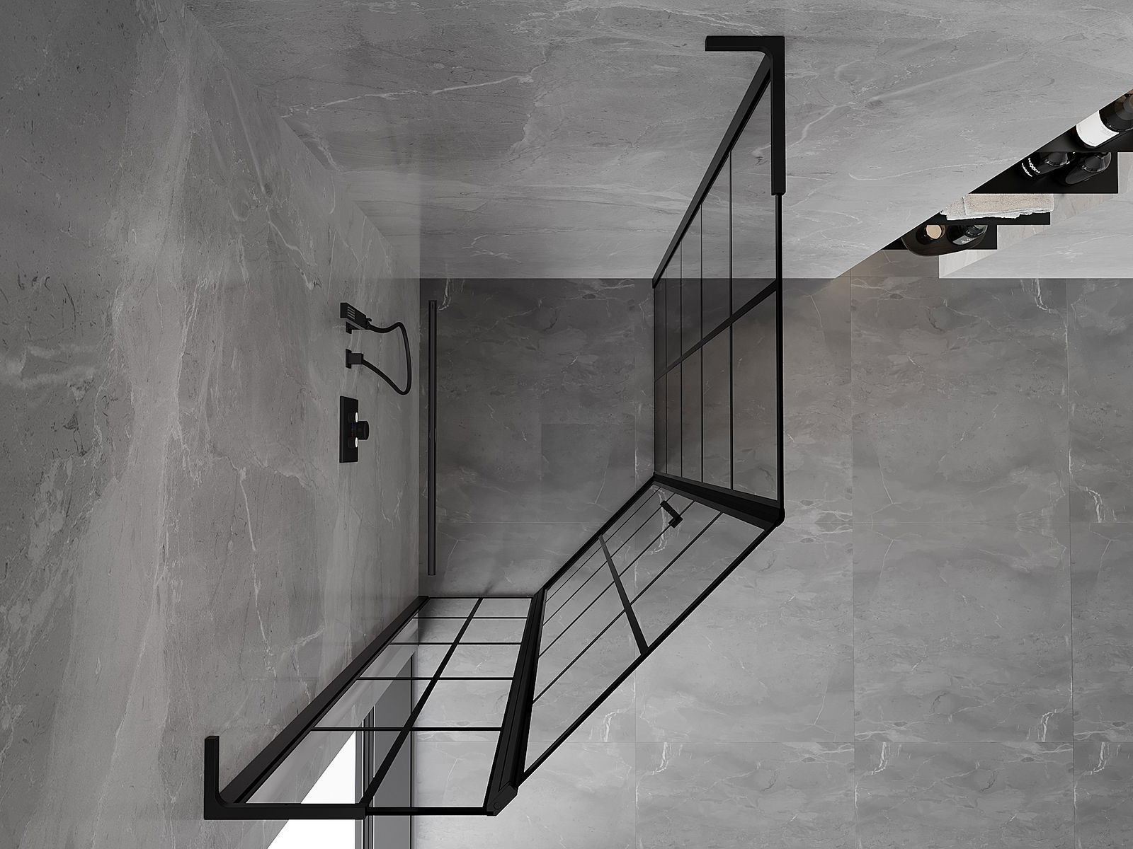 Mexen Mist L asymetrická päťuholníková sprchová kabína, otočná, ľavá, 90 x 100 cm, čierna mriežka, čierna