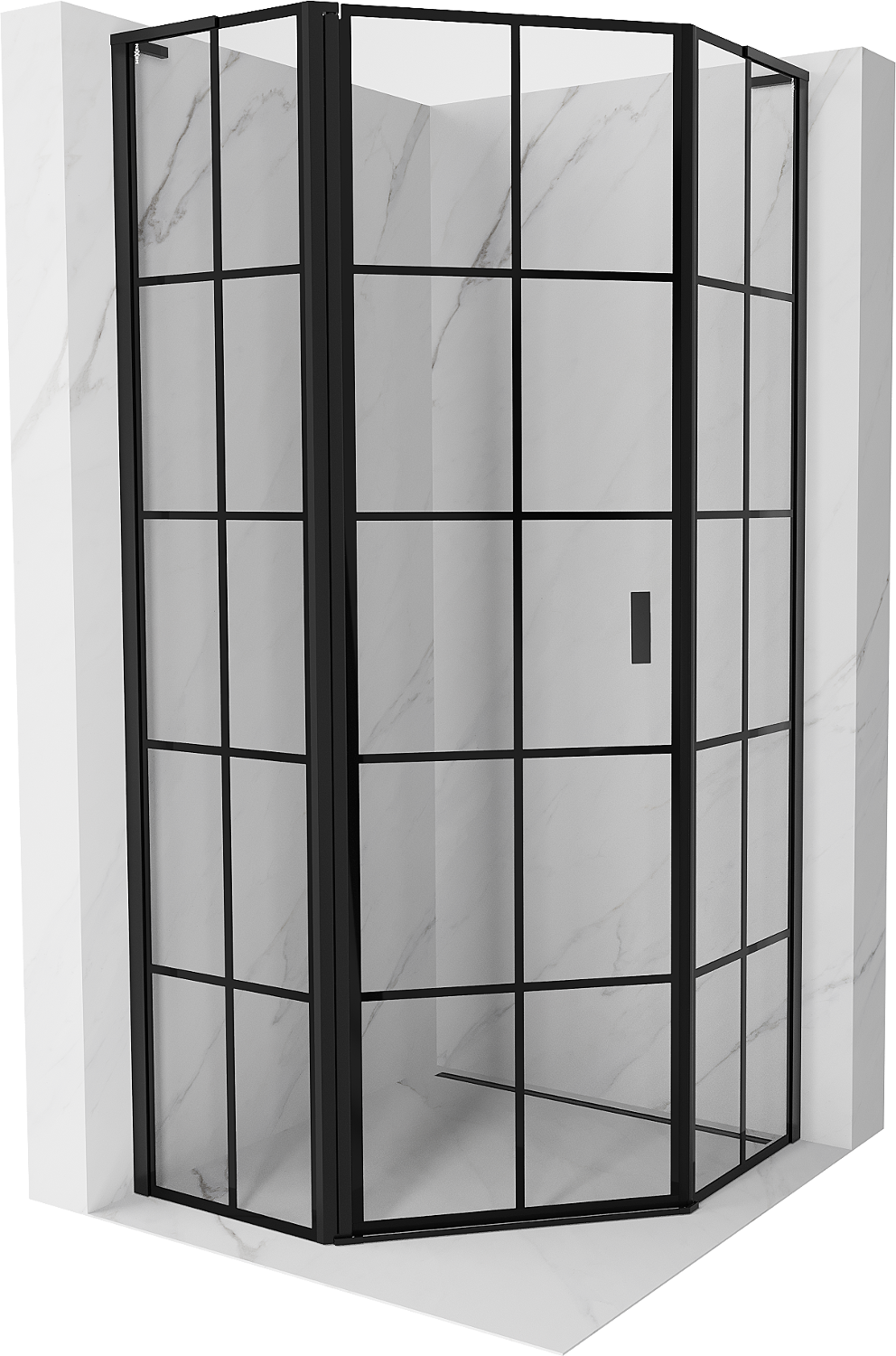Mexen Mist L päťuholníková sprchová kabína, otváracia, ľavá 100 x 100 cm, čierna mriežka, čierna - 8A8L-100-100-70-77-L