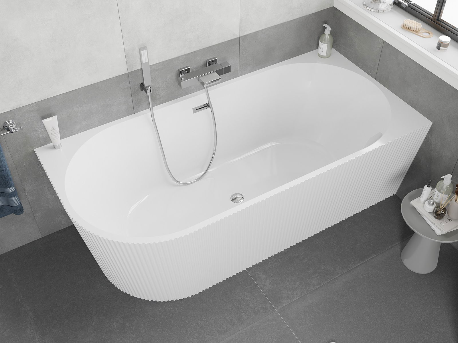 Mexen Silo samostatne stojaca rohová vaňa pravá ryhovaná 170 x 80 cm, biela, prepad chrómu - 52891708000P-01