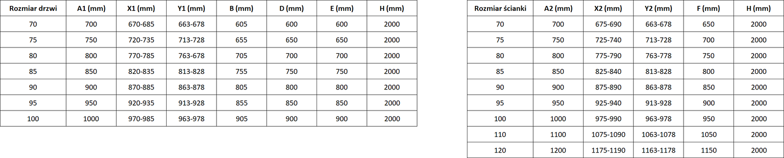 Veľkosť: 95x120 cm (dvere 95 cm, stena 120 cm)