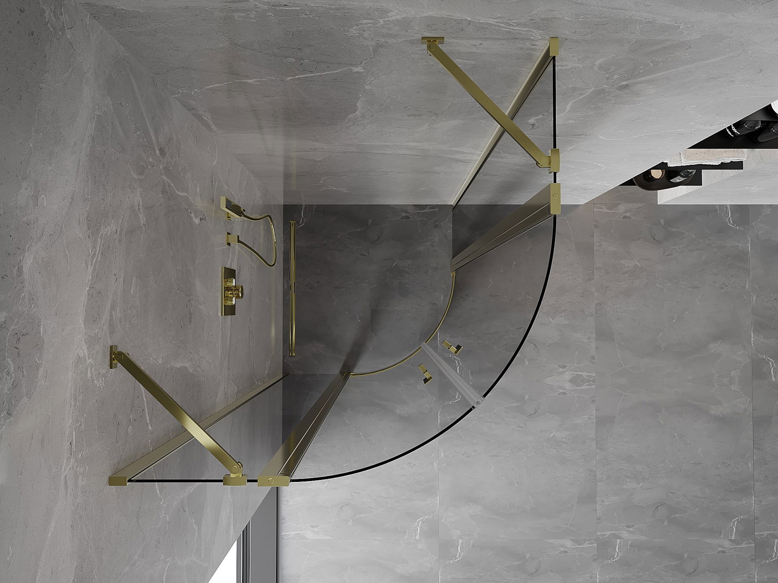 Praktická a pohodlná rukoväť je vyrobená z odolného a pevného kovu. Moderný tvar v kombinácii s povrchovou úpravou prispôsobenou farbe profilov dodáva celku moderný a štýlový vzhľad, zdôrazňujúc estetiku každej kúpeľne.