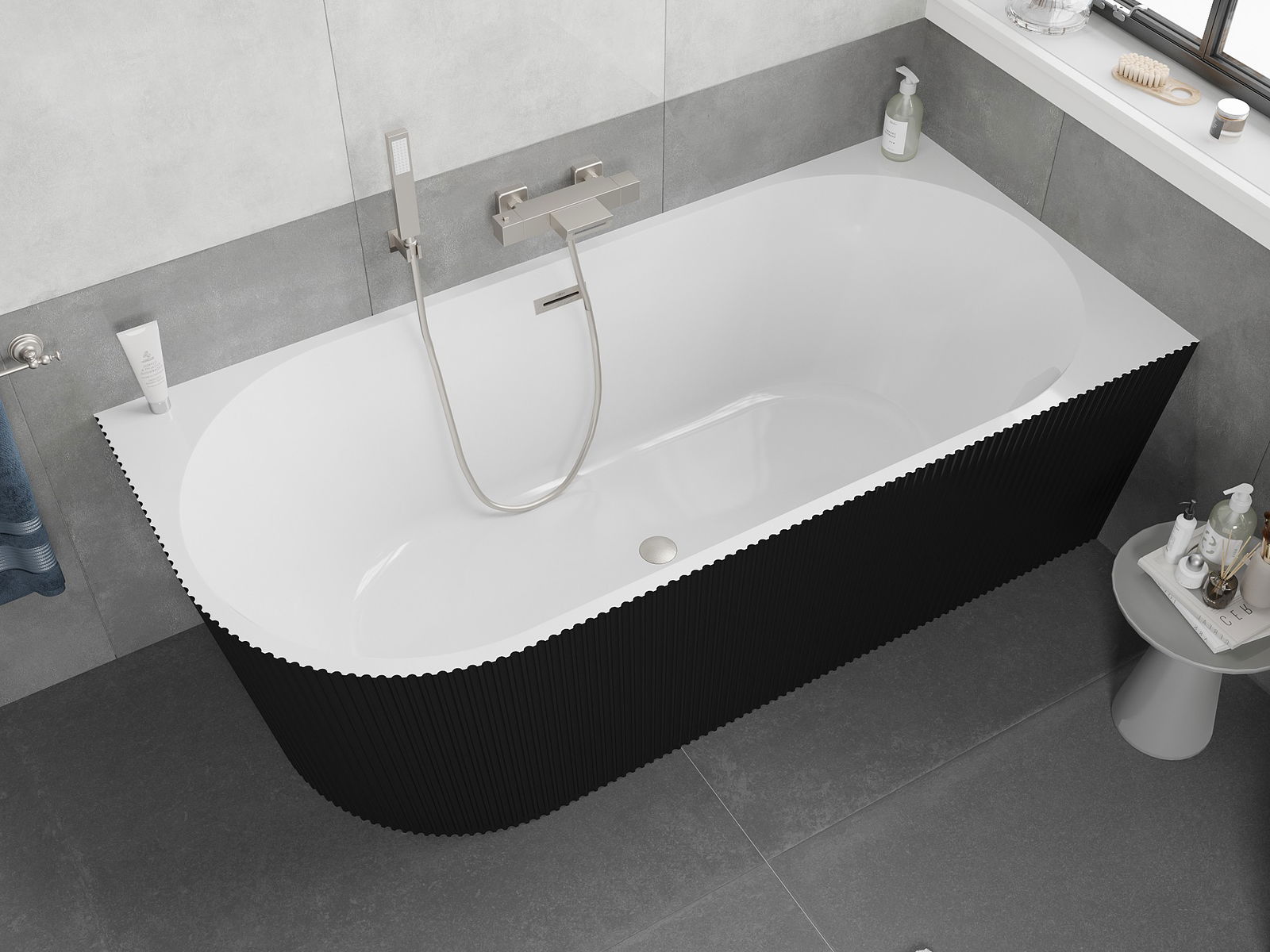 Mexen Silo voľne stojaca rohová vaňa pravá ryhovaná 170 x 80 cm, biela/čierna, prepad brúsený nikel - 52891708075P-97