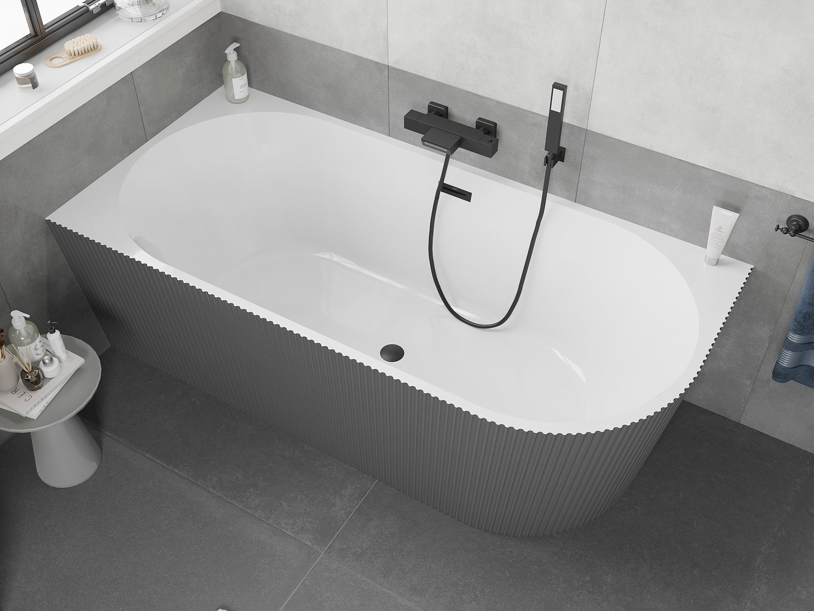 Je to moderný materiál, ktorý kombinuje elegantný vzhľad s vysokou trvanlivosťou. Je odolný proti mechanickému poškodeniu, ľahko sa čistí a je príjemný na dotyk. Transparentná forma a tenký okraj vane jej dodávajú ľahkosť a unikátny charakter, čím vytvárajú efektný prvok v usporiadaní kúpeľne.