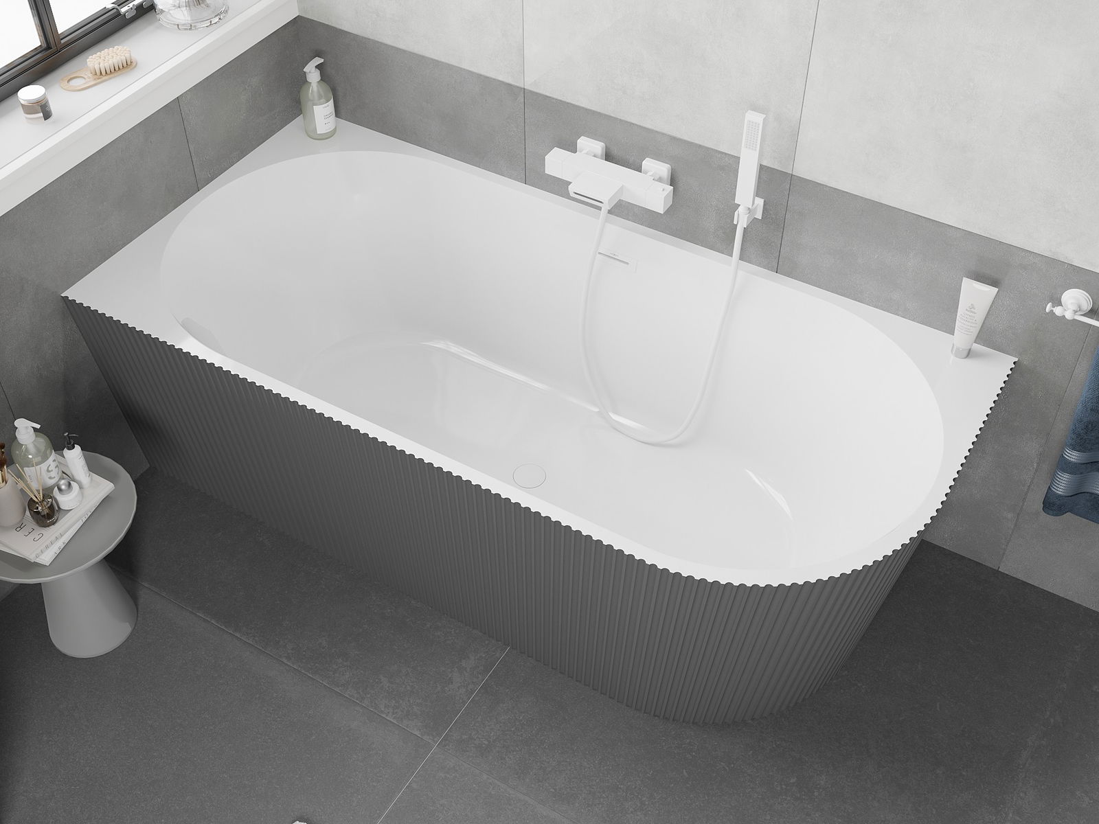 Je to moderný materiál, ktorý kombinuje elegantný vzhľad s vysokou trvanlivosťou. Je odolný proti mechanickému poškodeniu, ľahko sa čistí a je príjemný na dotyk. Transparentná forma a tenký okraj vane jej dodávajú ľahkosť a unikátny charakter, čím vytvárajú efektný prvok v usporiadaní kúpeľne.