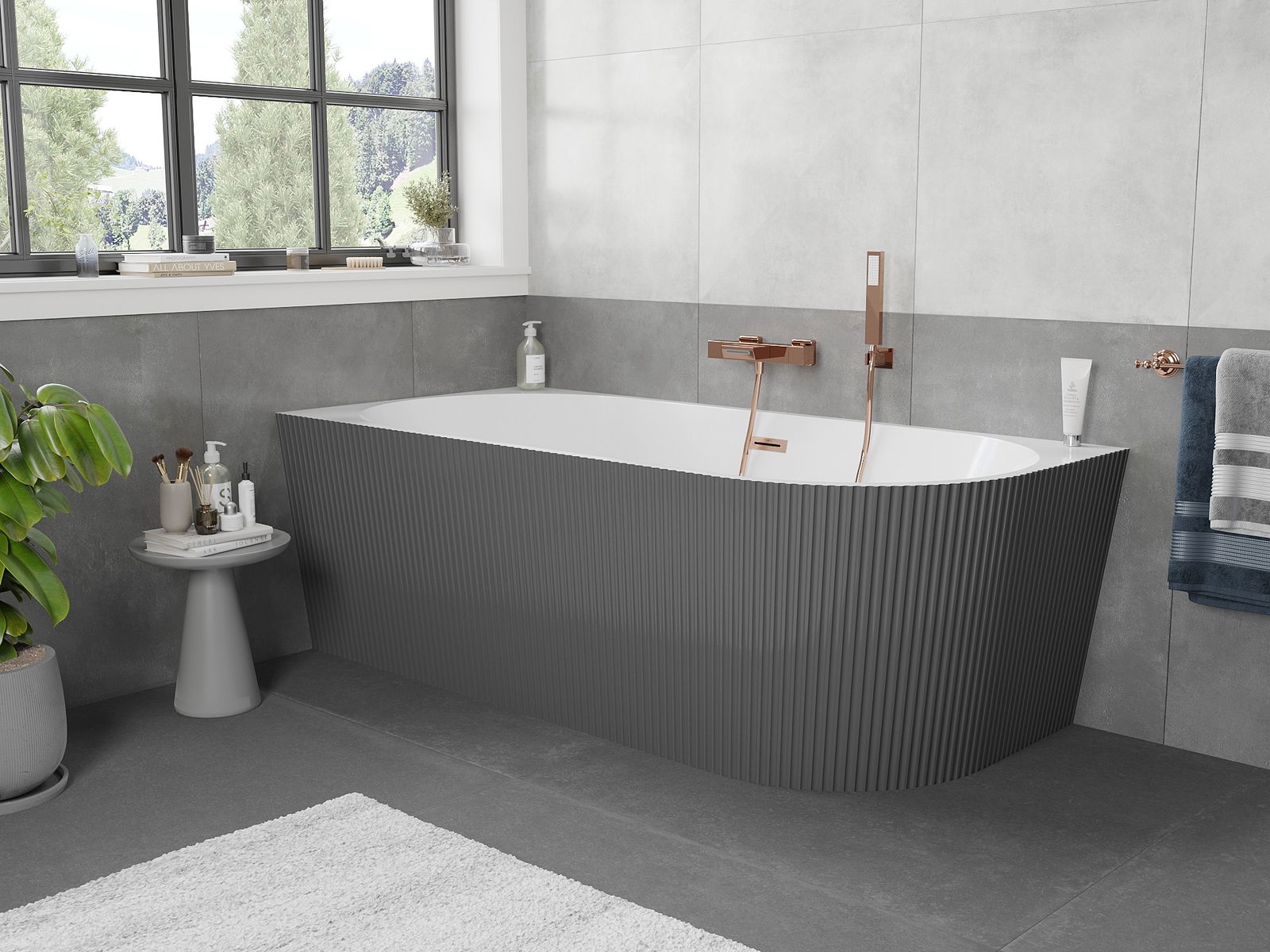 Je to moderný materiál, ktorý kombinuje elegantný vzhľad s vysokou trvanlivosťou. Je odolný proti mechanickému poškodeniu, ľahko sa čistí a je príjemný na dotyk. Transparentná forma a tenký okraj vane jej dodávajú ľahkosť a unikátny charakter, čím vytvárajú efektný prvok v usporiadaní kúpeľne.
