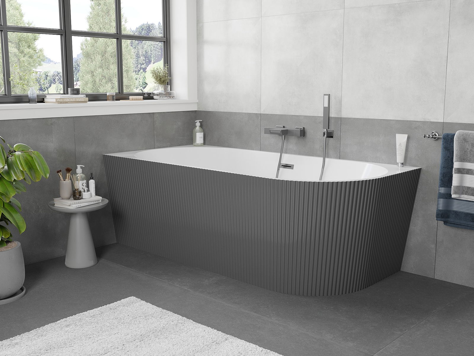 Je to moderný materiál, ktorý kombinuje elegantný vzhľad s vysokou trvanlivosťou. Je odolný proti mechanickému poškodeniu, ľahko sa čistí a je príjemný na dotyk. Transparentná forma a tenký okraj vane jej dodávajú ľahkosť a unikátny charakter, čím vytvárajú efektný prvok v usporiadaní kúpeľne.